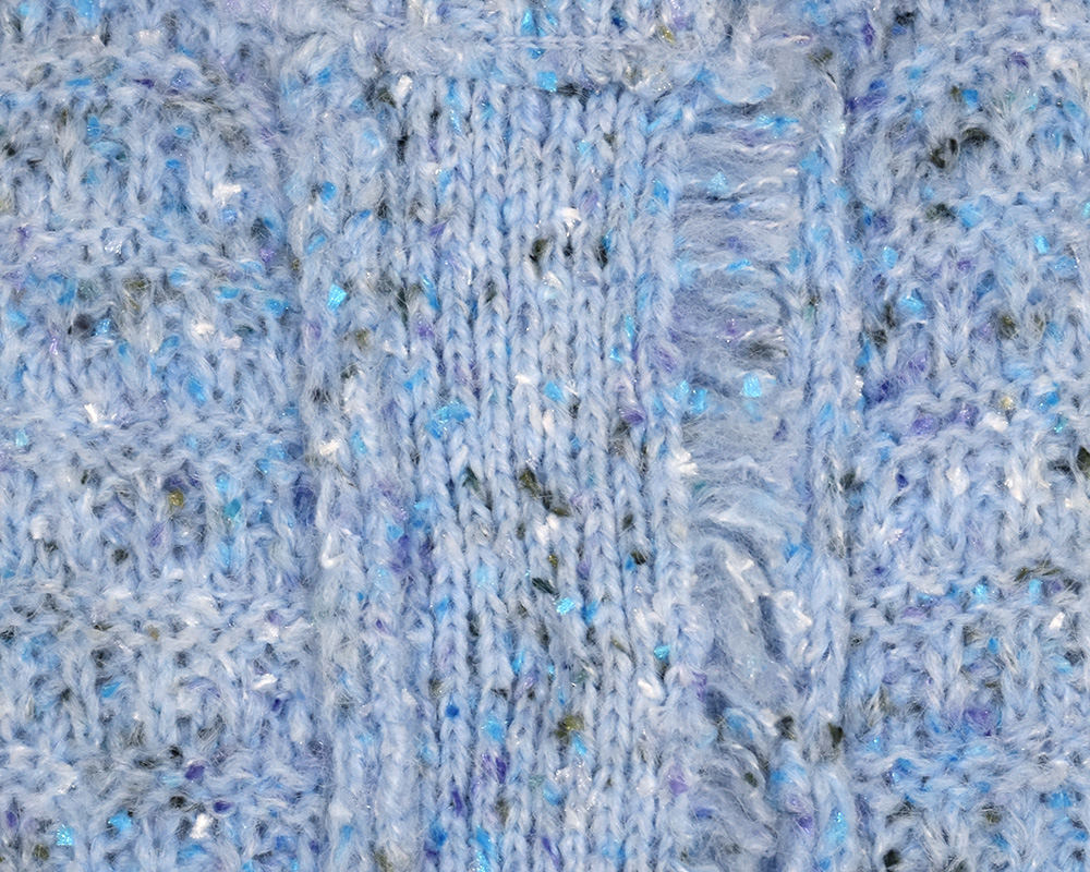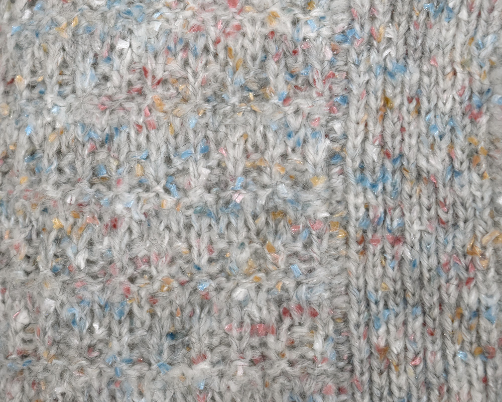 | 素材 | FABRIC:カラーネップヤーン3G QUALITY:ポリエステル72%(リサイクルポリエステル25%) アクリル21% 毛7% ※washable |