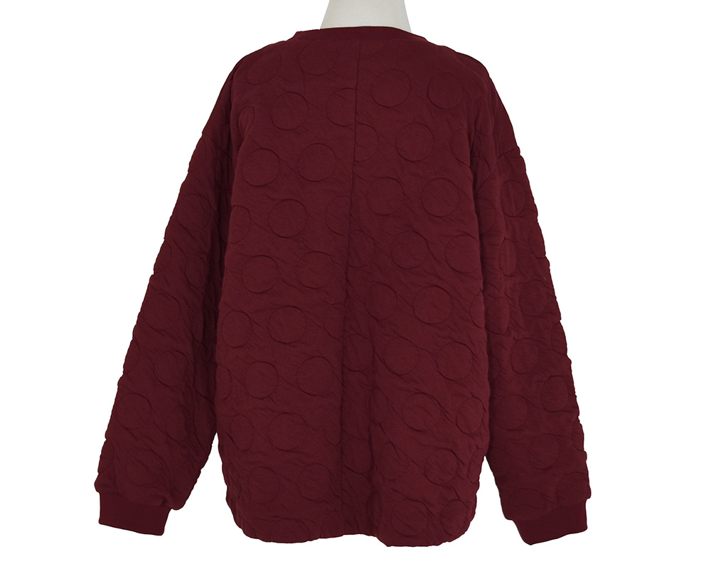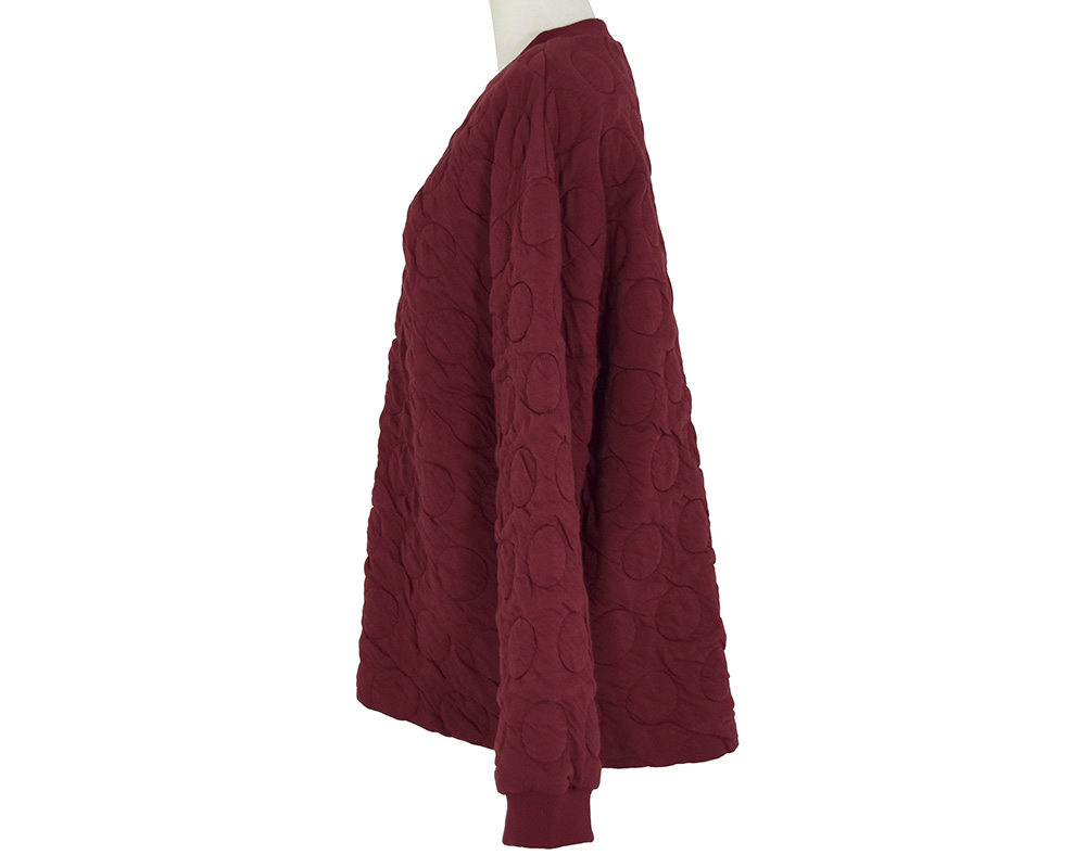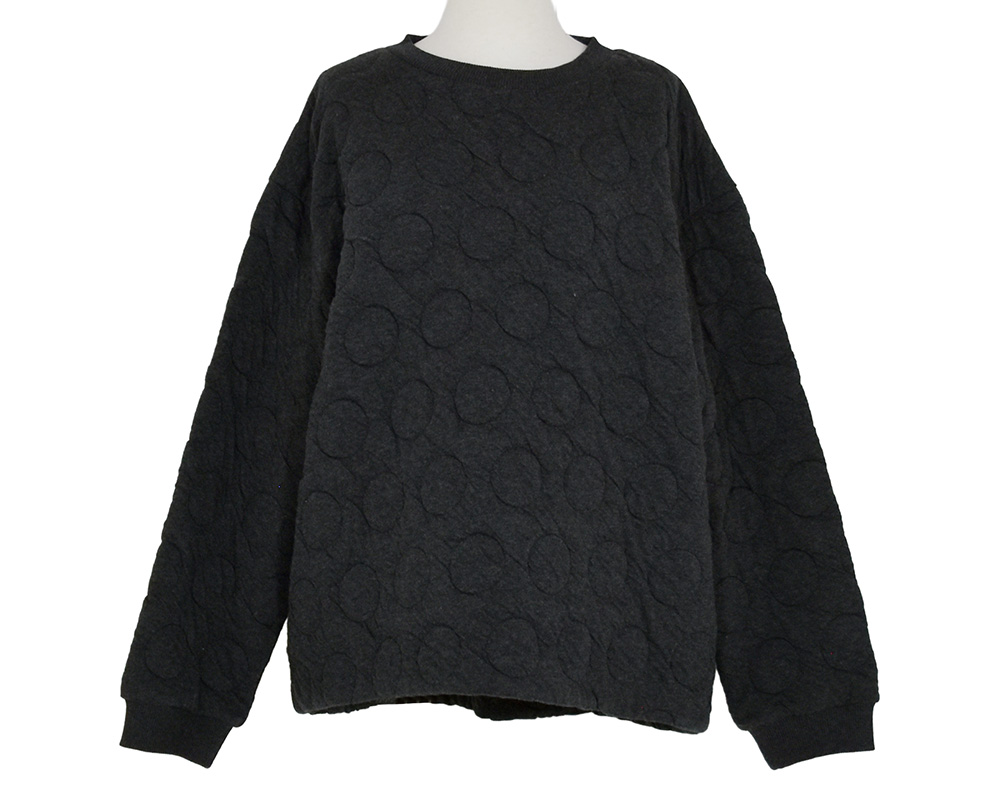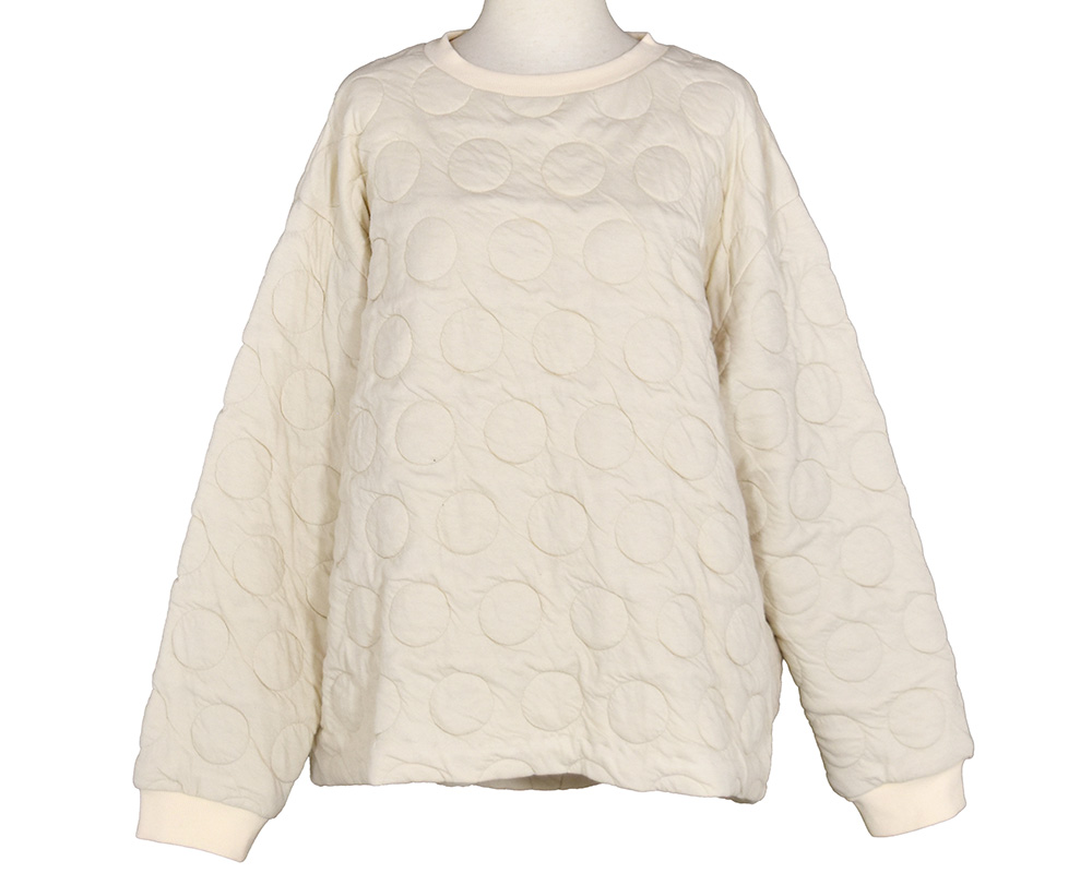 ・立体感のあるドット柄で、リラックスした着心地ながら、一枚で着映えするプルオーバーです。襟と袖口はリブ仕立てで、着脱しやすく、袖はブラウジングしやすい仕様です。