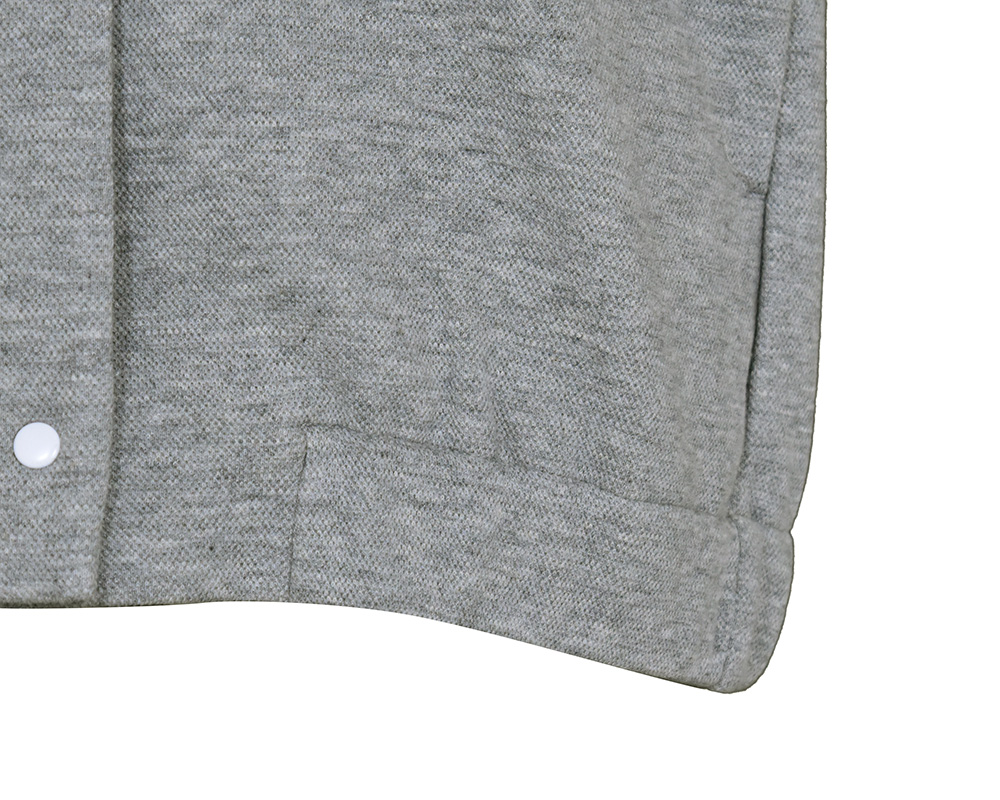 ・表面はカノコ編みで型崩れしにくく、裏側は裏毛・裏起毛仕様でやさしいあたたかさを感じられる素材です。シルエットの立体感を保ちながら、軽やかで快適な着心地に仕上げています。