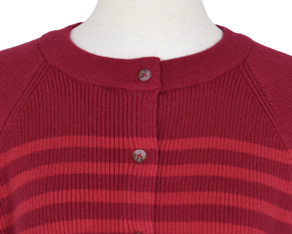 | 素材 | FABRIC:PBTソフトリブボーダー QUALITY:ポリエステル44% レーヨン38% ナイロン18% ※washable |