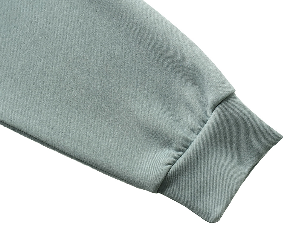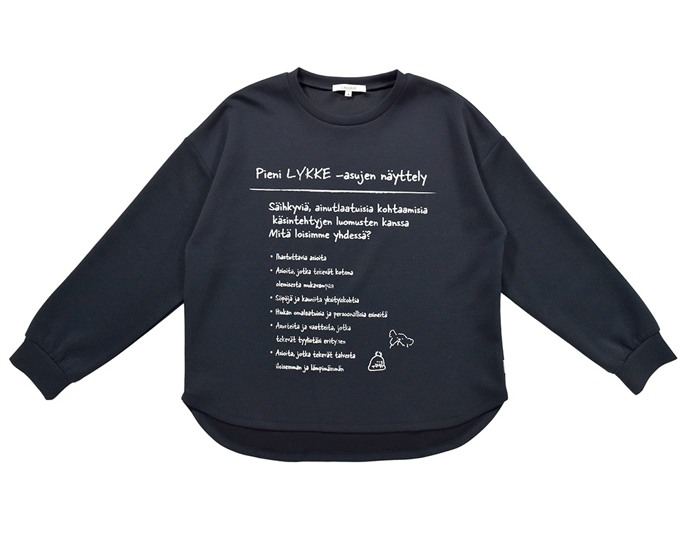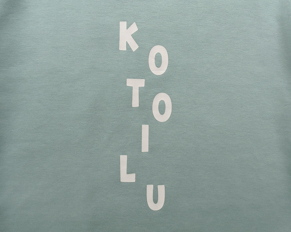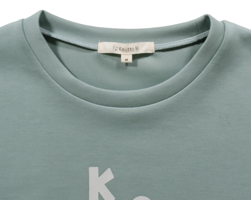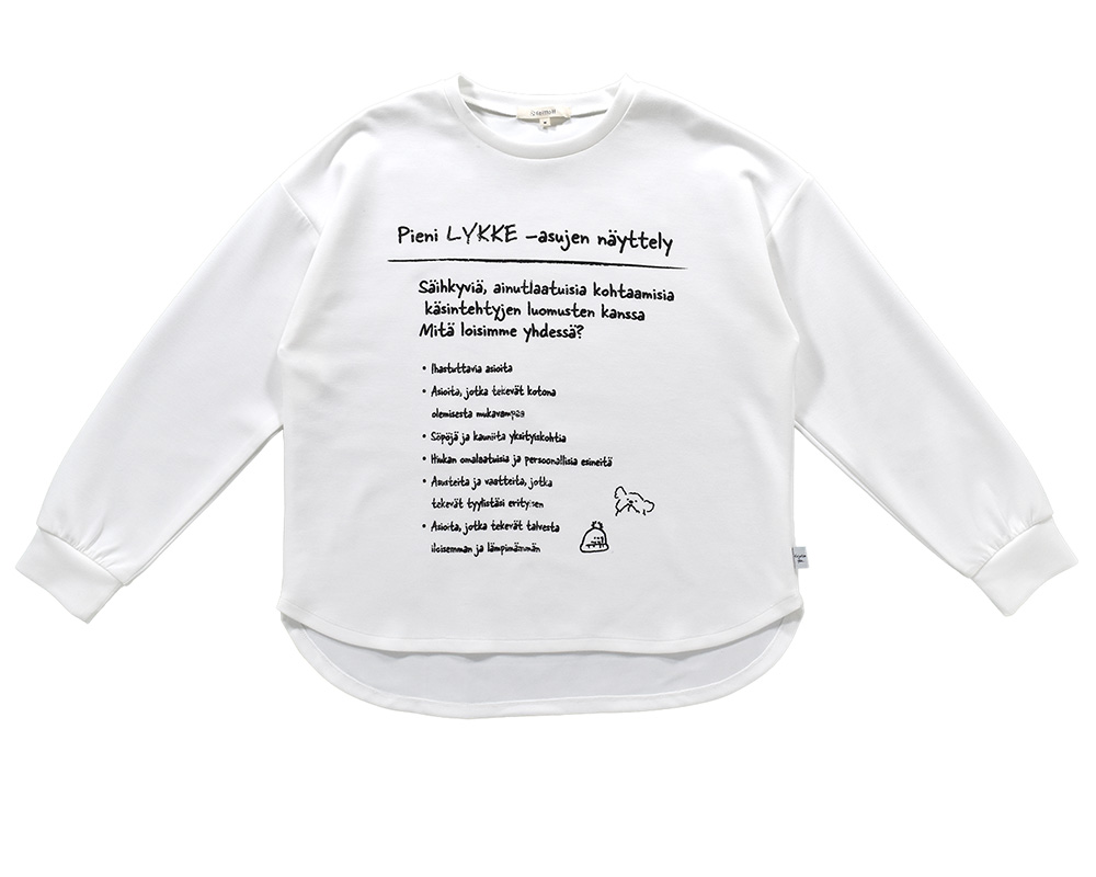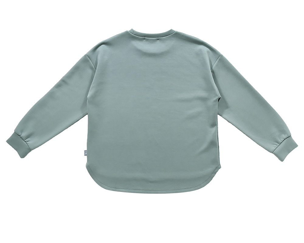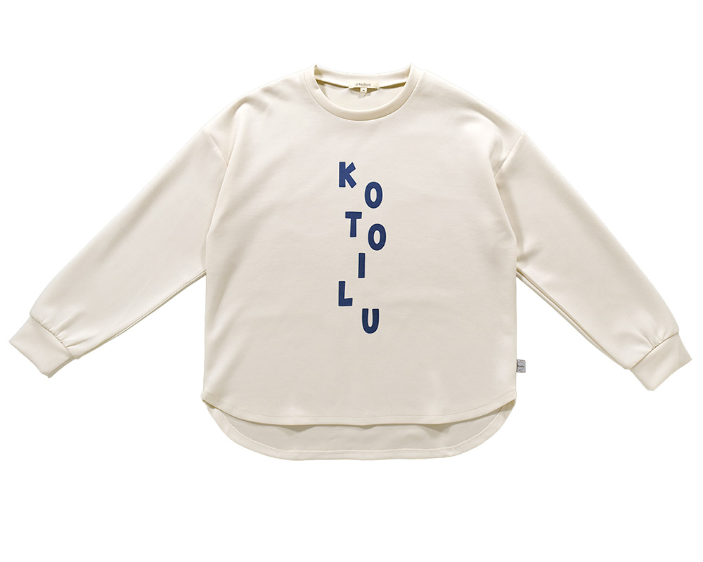 ほどよいゆったり感のあるプルオーバーです。後ろの裾は少し長めでラウンドになっており、お尻周りをカバーしてくれます。弾力感と柔らかさのあるダンボールニット生地を使用。肌触りもよくさらりとした着心地です。オフとダークネイビーは、ゆみこさんの打ち合わせノートをイメージしたプリント柄に。アイボリーとミントグリーンは、おうちで手しごとするゆみこさんをイメージしたロゴを縦に配置しました。左脇にはノートや、手しごととFIKAのピスネーム付きです。