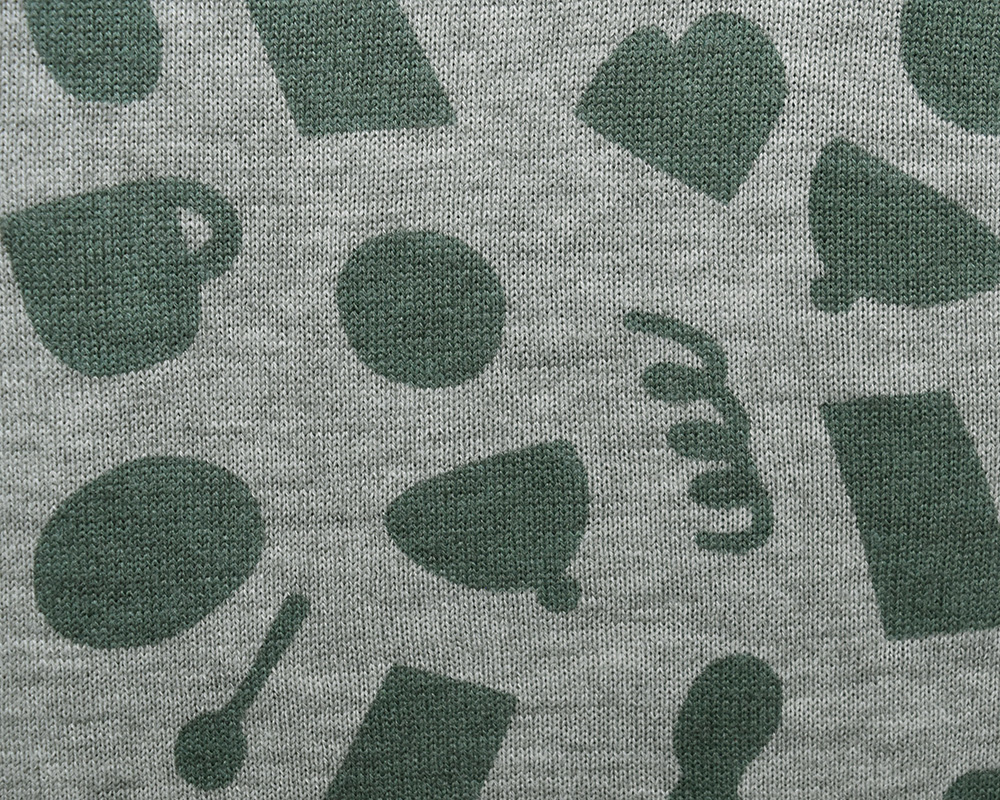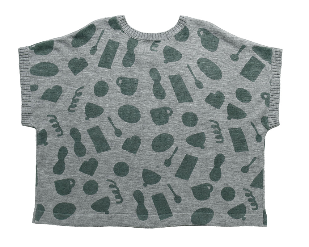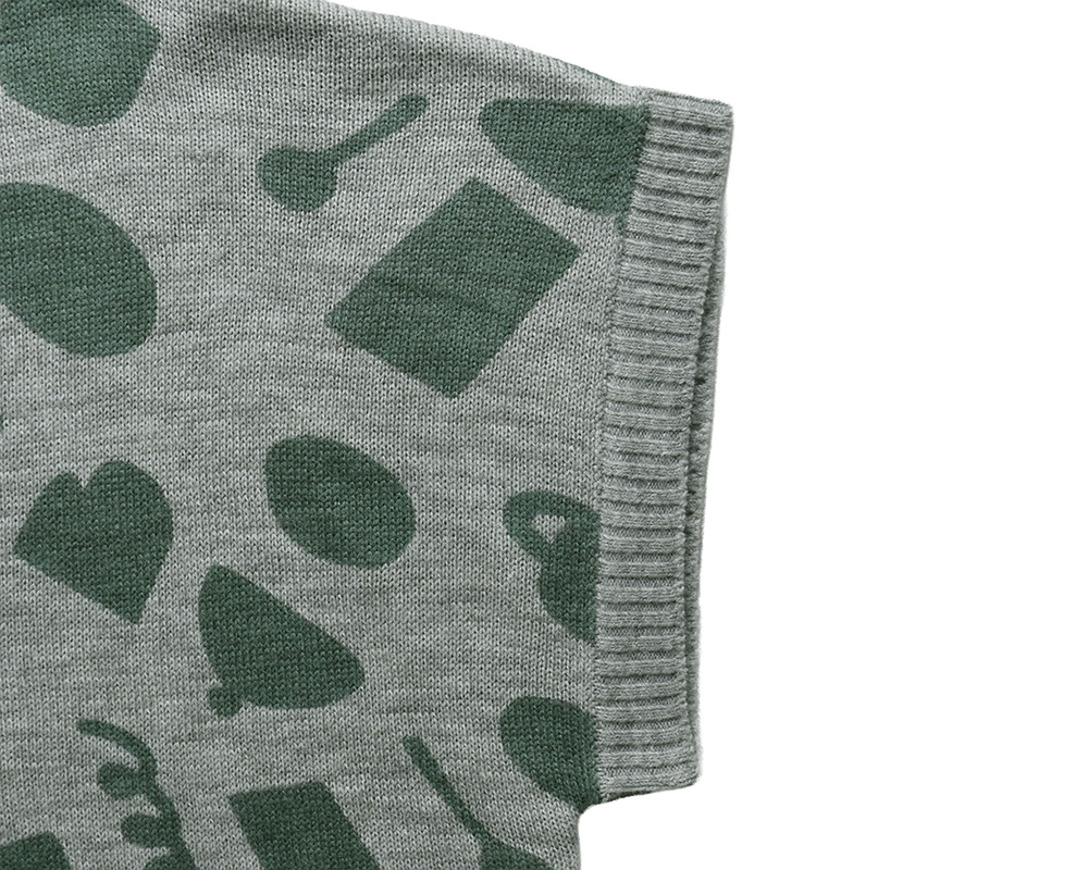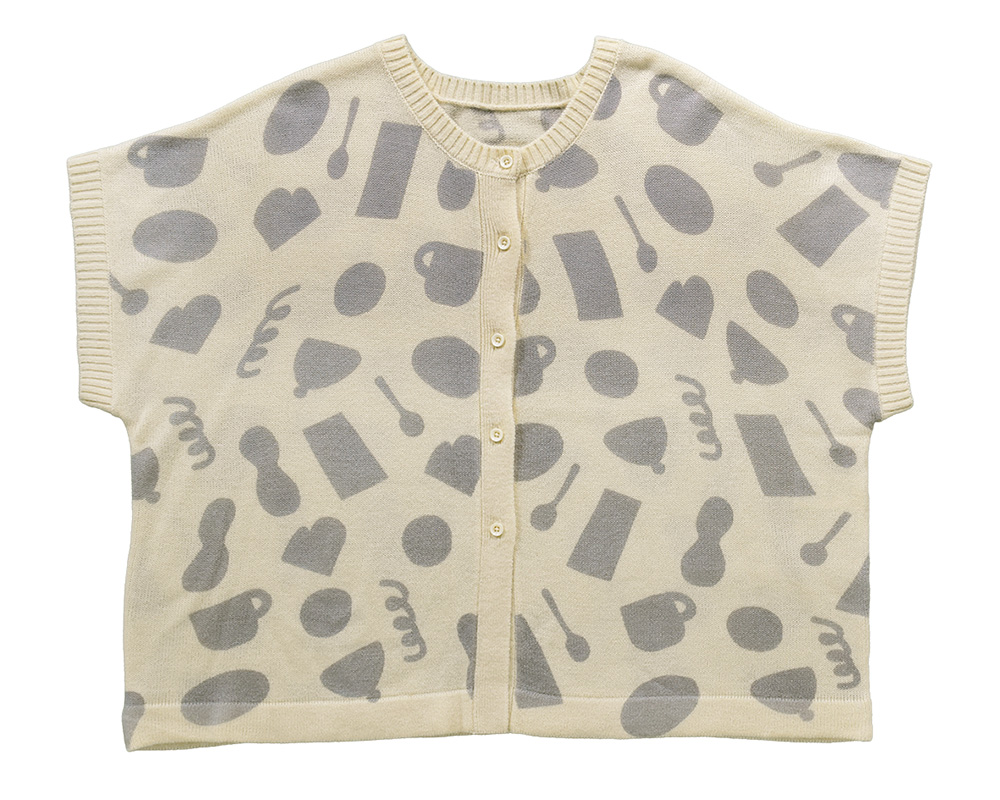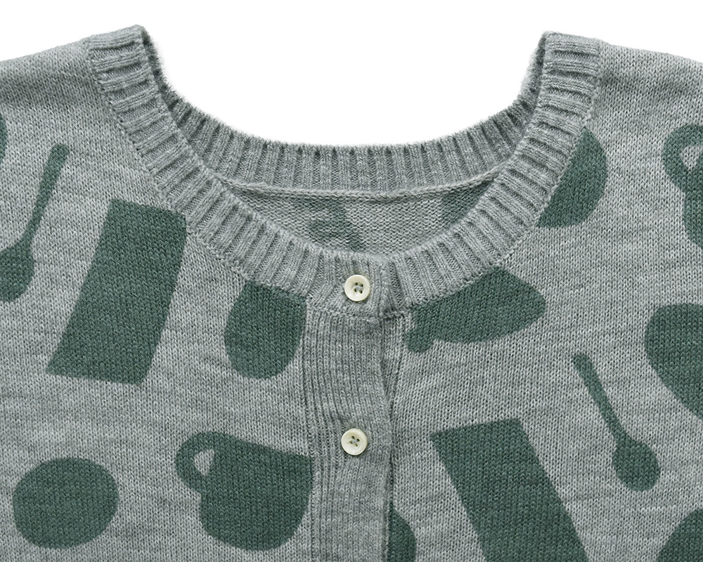 着こなしの幅が広がる前後着用可能なデザイン。ゆったりとしたワイドシルエットで、リラックス感のある着心地です。アクリルナイロンの糸を使用し、ふんわりとした柔らかい風合いに仕上げました。LYKKE(リュッケ)なひとときを思わせる、毛糸やミトン、ニット帽、マグカップ、スプーンなどのモチーフを散りばめた温もりのあるプリント柄です。