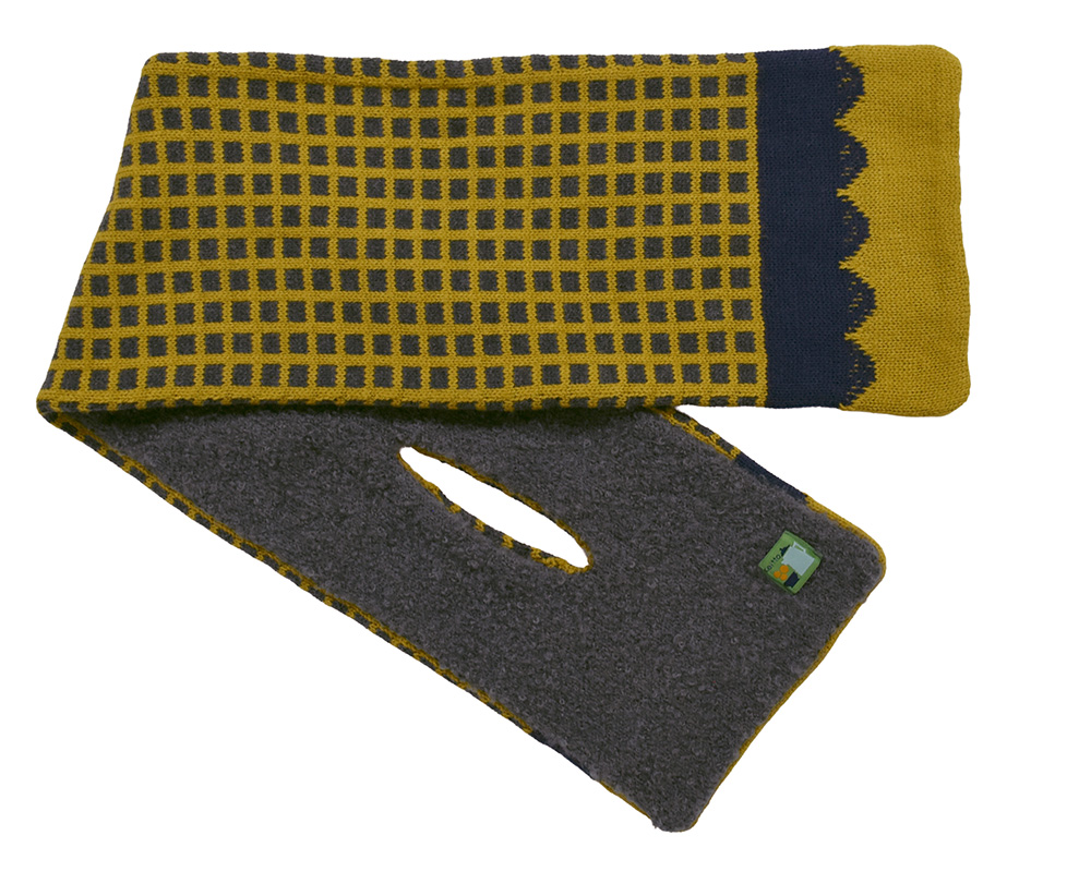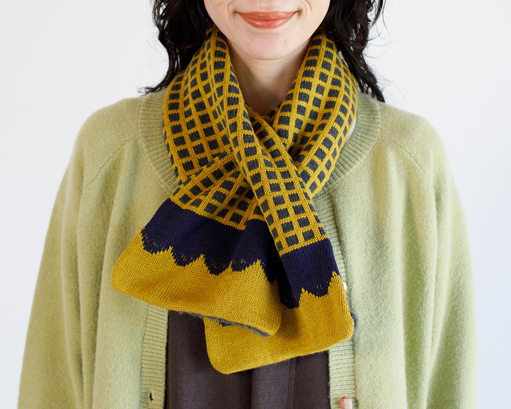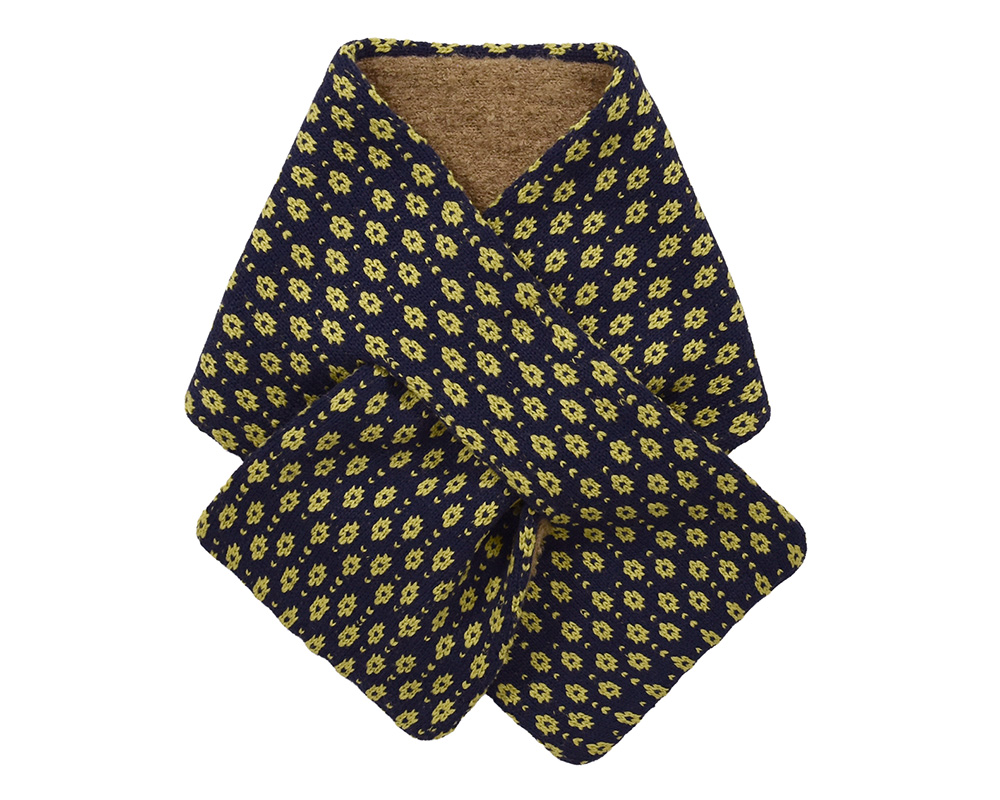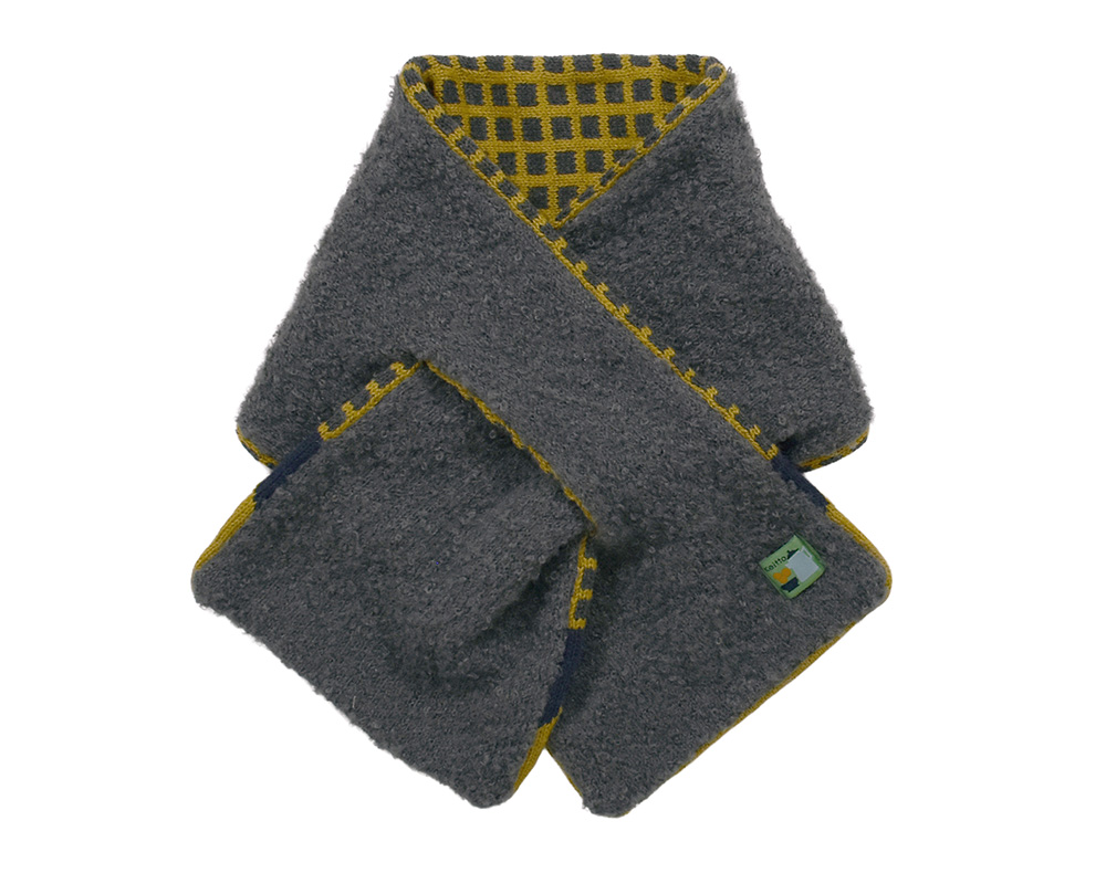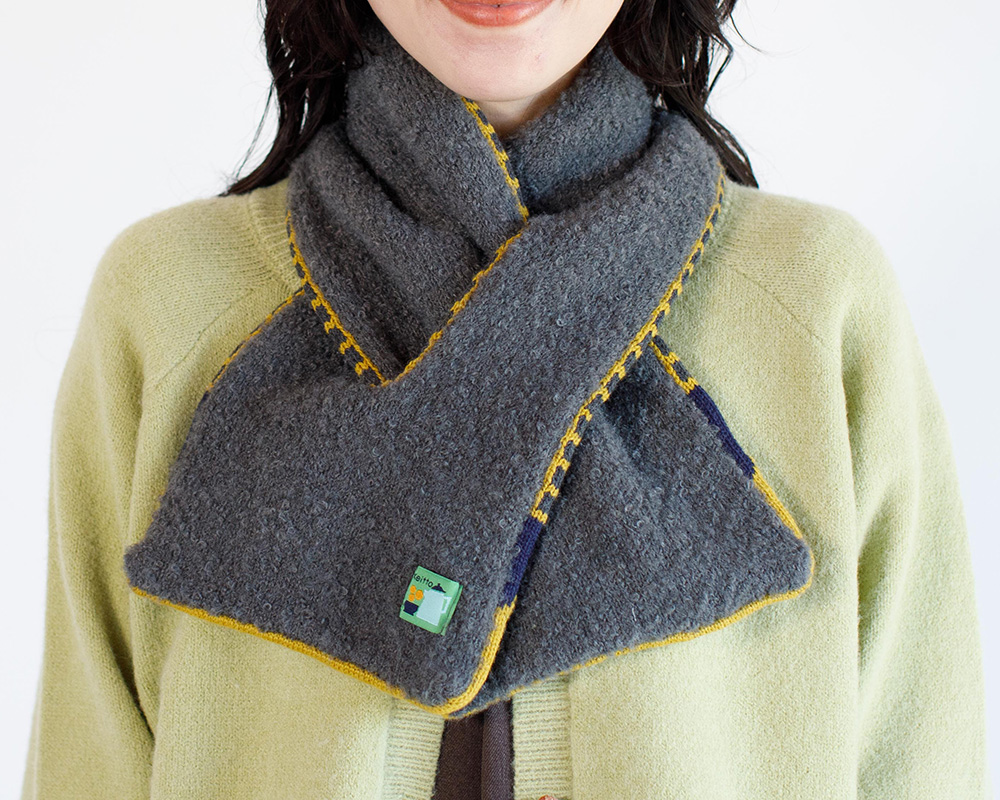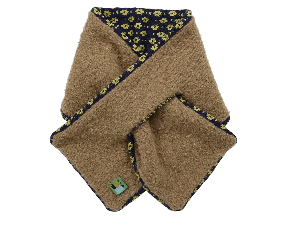 リバーシブルタイプのネックウォーマー。その日のお洋服に合わせて着用していただけます。アクリル糸を使用しているので強度や耐久性に優れています。コーディネートのポイントになるような、格子柄と小花柄の編み柄にしました。柄物のお洋服を合わせる時はループ糸の無地面を表に使用できます。ポイントにFIKAをイメージしたオリジナルブランドネームを付き。