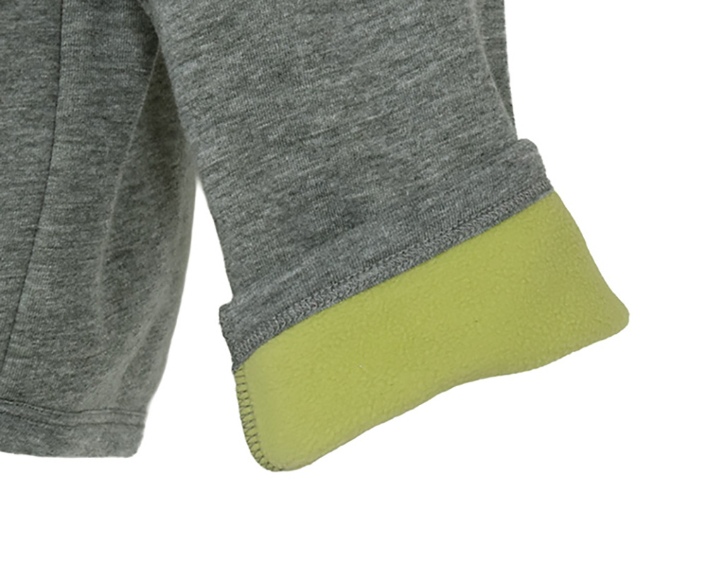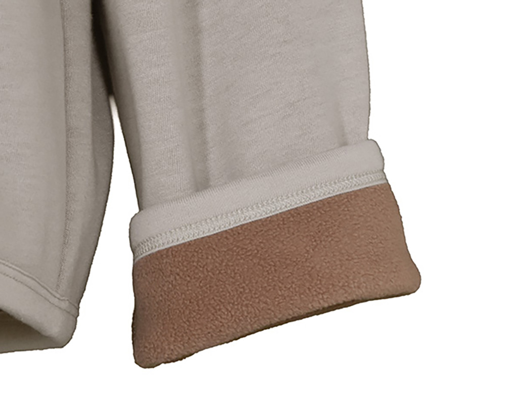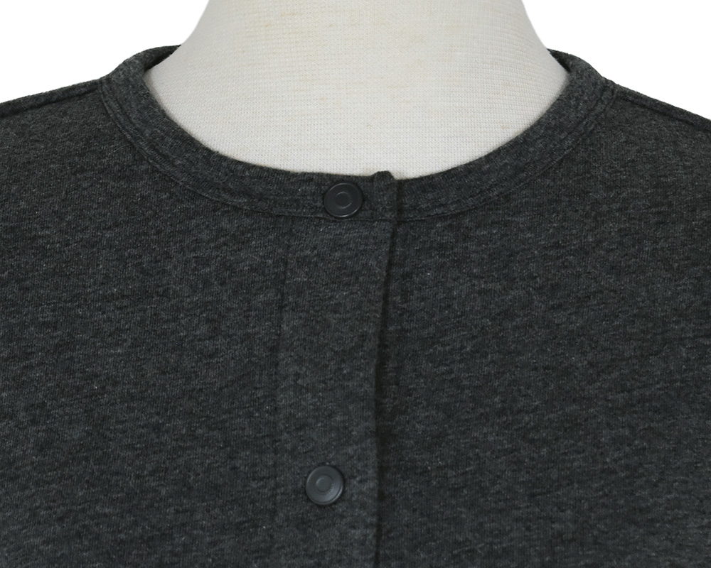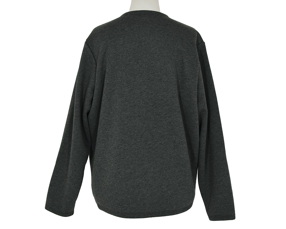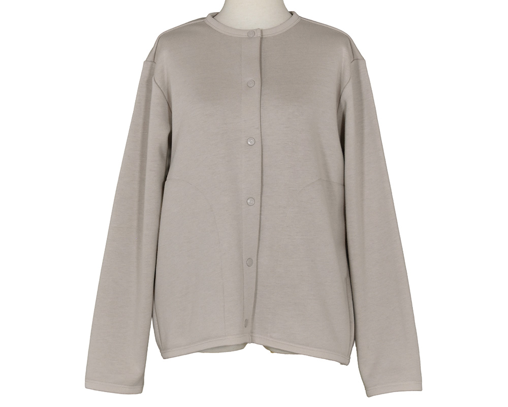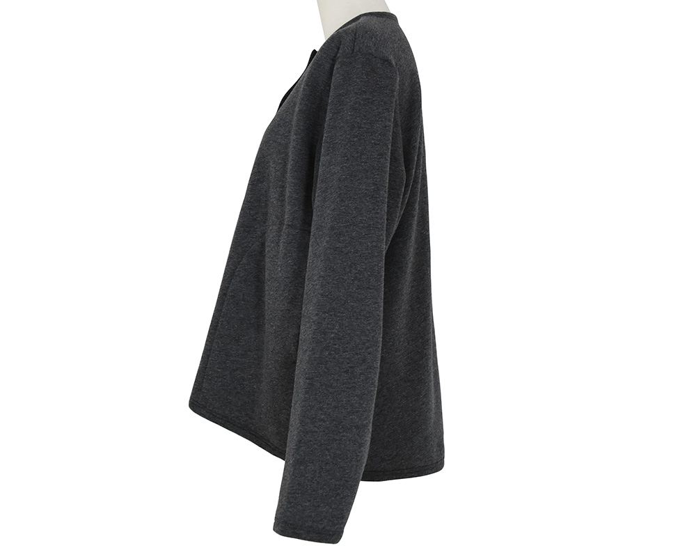 ・表面は天竺素材でさらっとなめらかな肌触り、裏面はあたたかみのあるフリース素材を使用しています。スウェットほどの厚みで、軽くて気軽に羽織れるカットソー素材を使用しています。