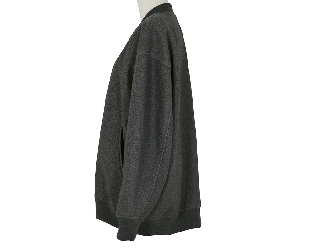 ・柔らかで暖かみのある感触のジャージメルトン素材を使用したブルゾンです。滑らかな素材にリブ使いのデザインで、上品ながらカジュアルに仕立てています。ほどよくゆったりとしたサイズ感で、気軽に羽織れる1枚です。前身頃両脇ポケットあり。