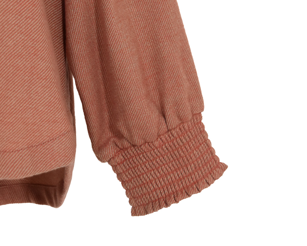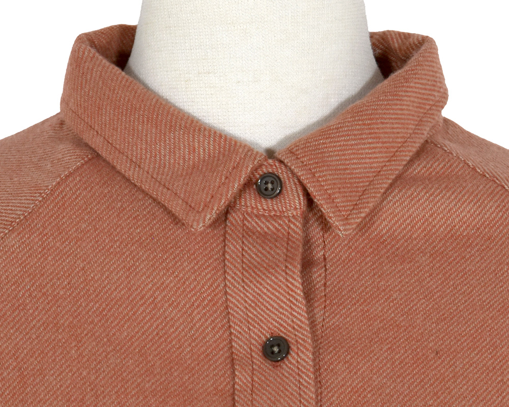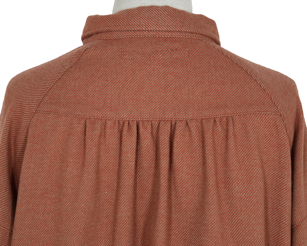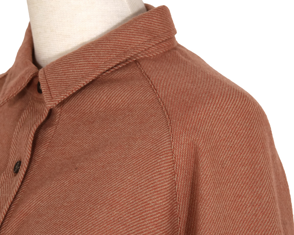 ・シャンブレー織りの表面に起毛加工を施し、ソフトであたたかみのある風合いに仕上げています。季節感を兼ね備えたウォーム感のある素材を使用しています。