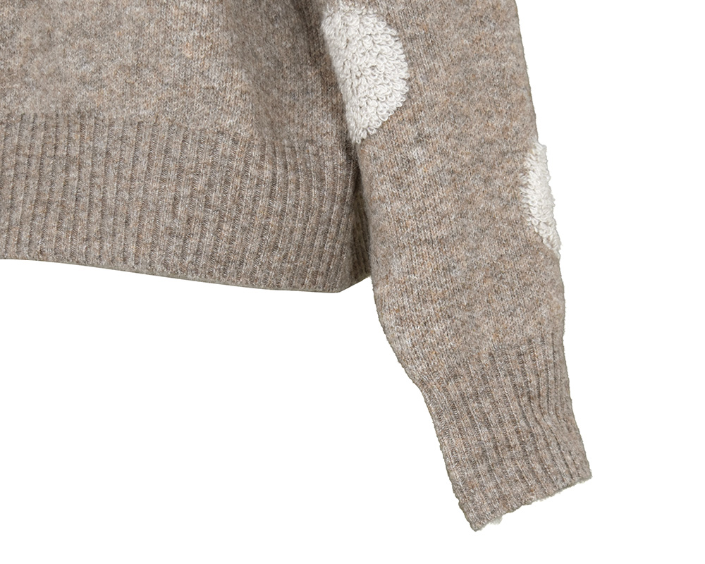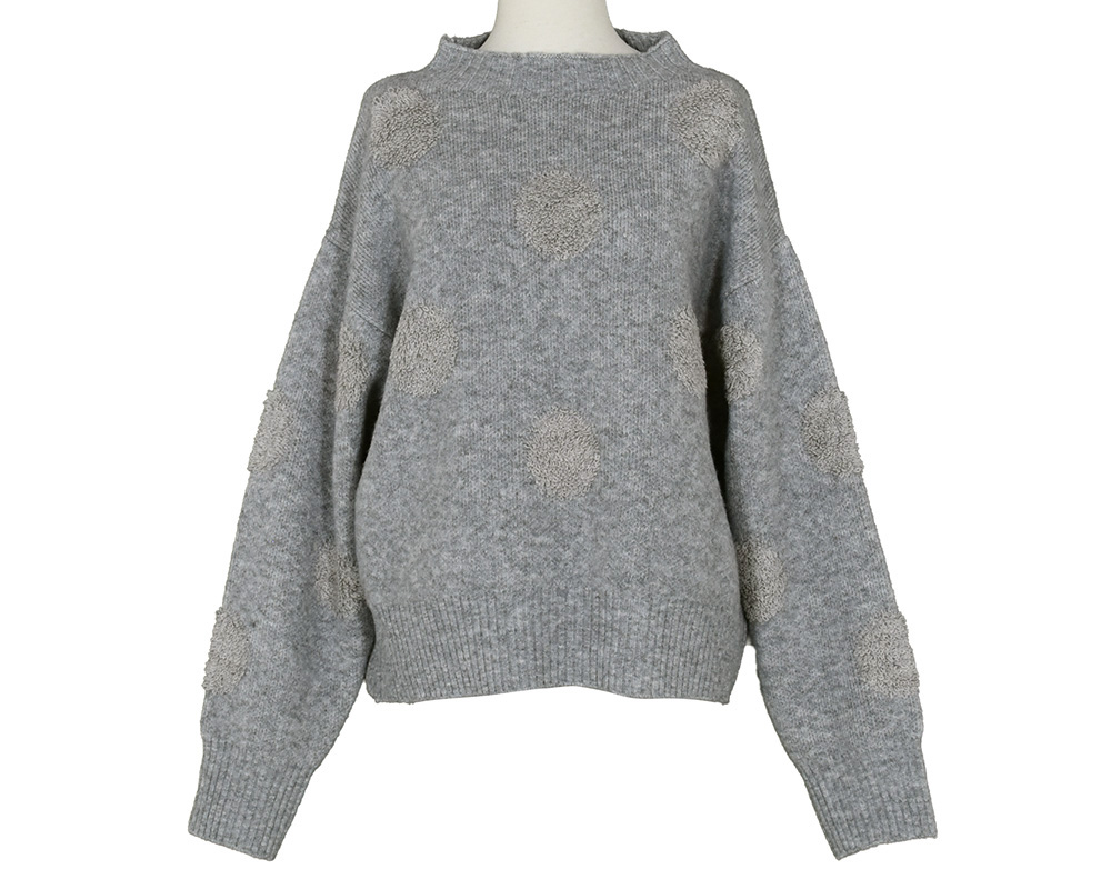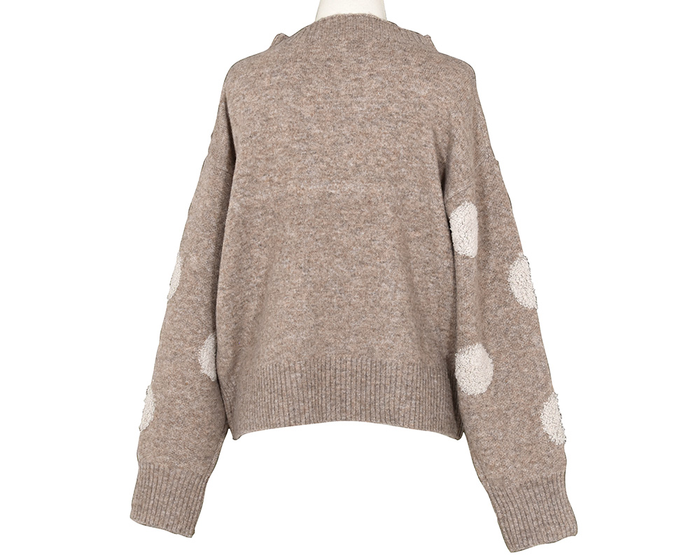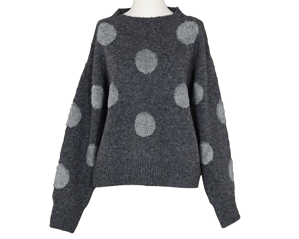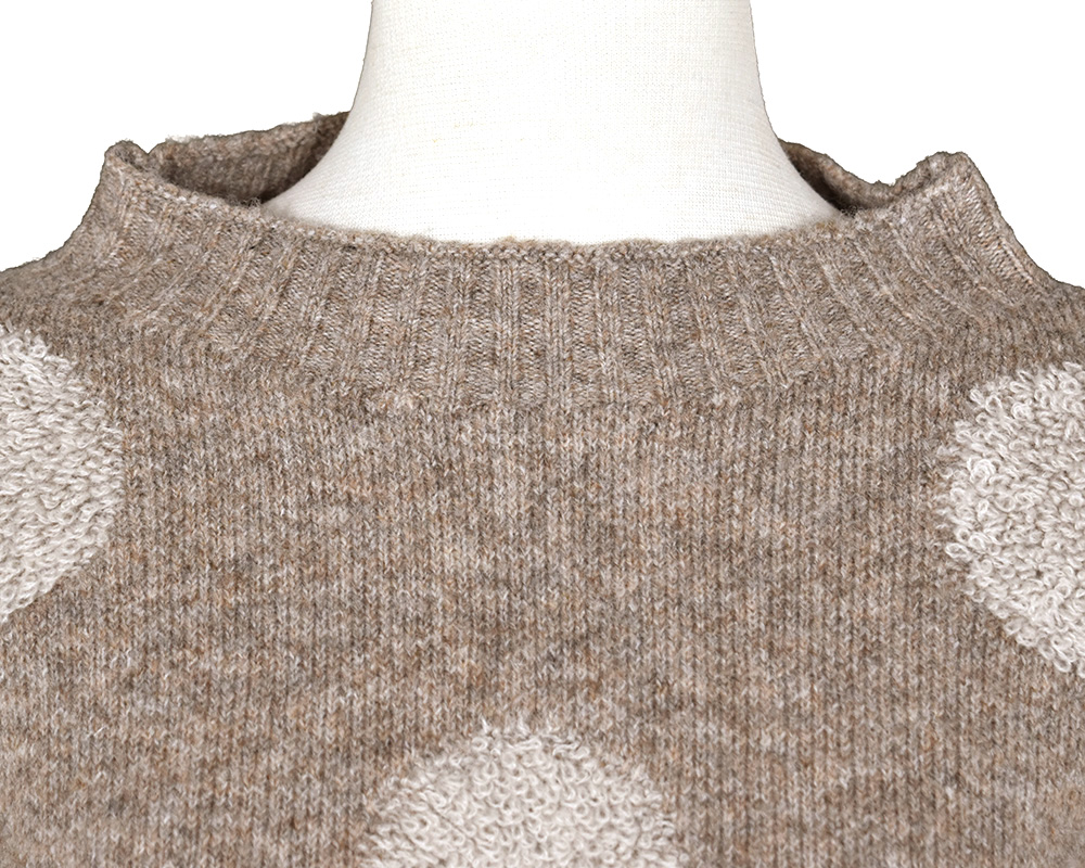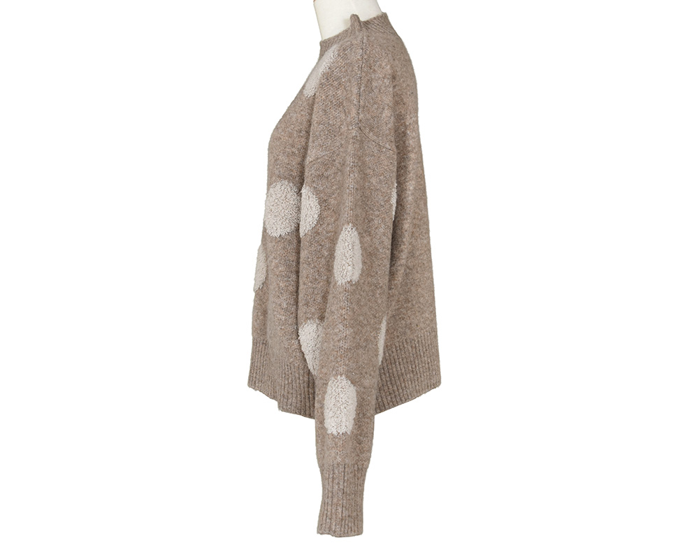 ・ドット部分をループ編みで立体的に仕上げたニットプルオーバーです。ドット柄がスタイリングにニュアンスを加え、暗くなりがちな冬のコーディネートに華やかさを添えてくれる一枚です。