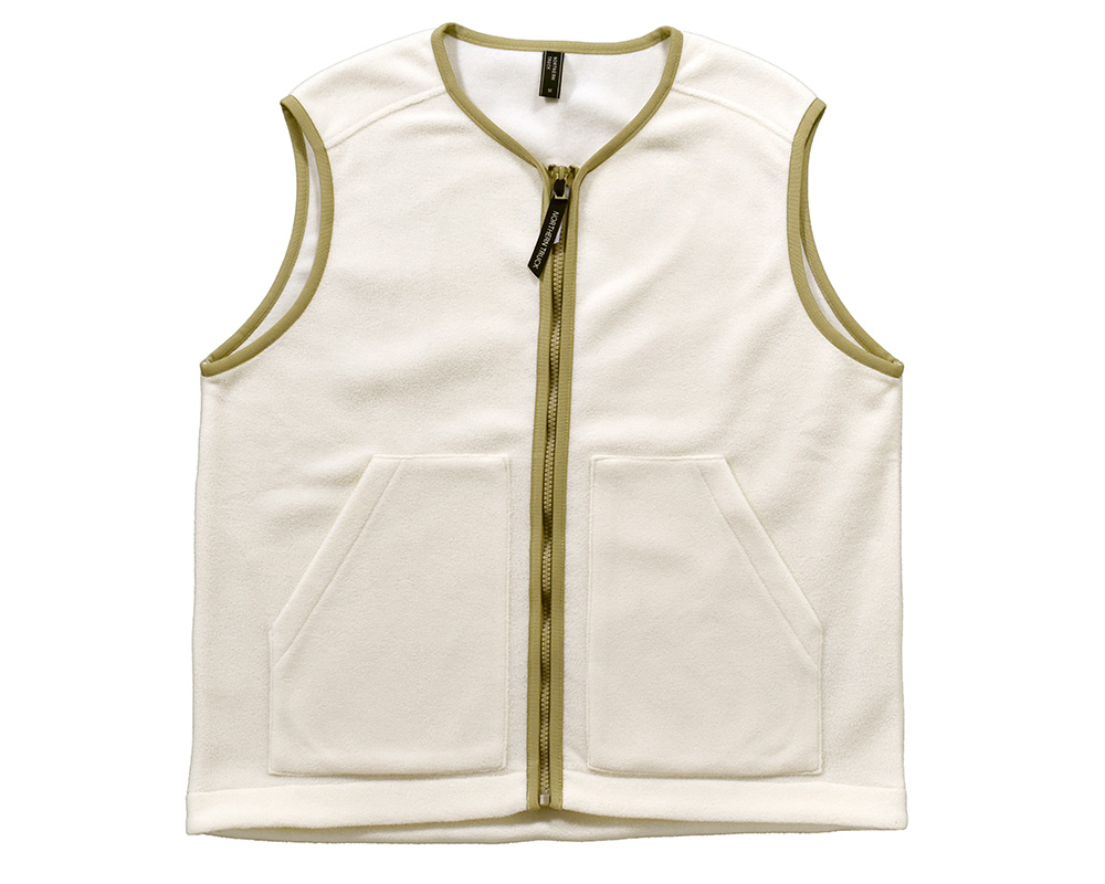 軽くて暖かいフリース素材を使用した、ジップ仕様のベスト。柔らかな肌ざわりが特徴です。ドロップショルダーとゆったりめのシルエットで、厚手のインナーの上からも重ねやすいデザイン。大きめのポケットがアクセントになり、実用性も◎。秋冬のアウトドアスタイルや、普段使いのレイヤードコーデに活躍する万能アイテムです。