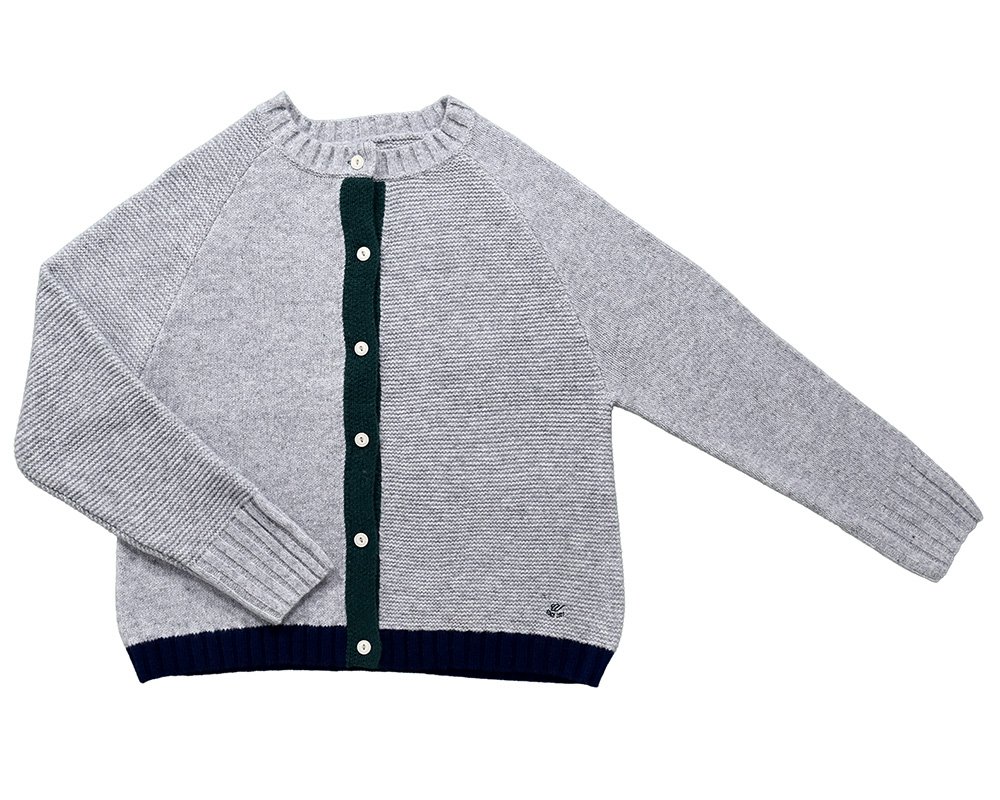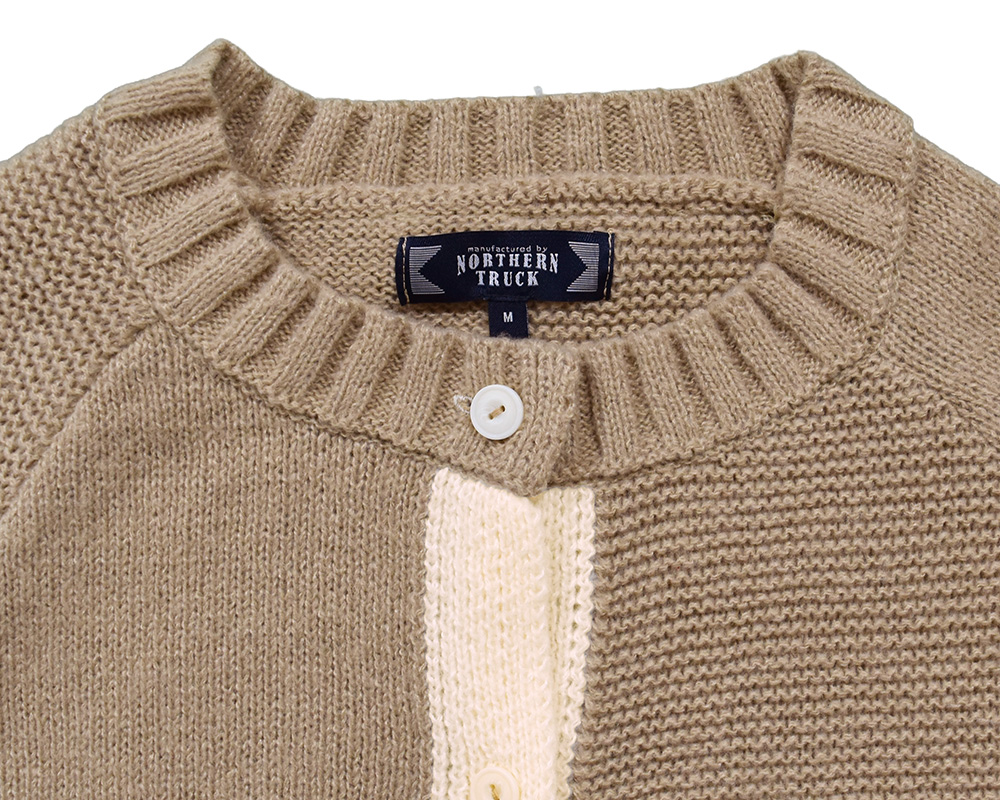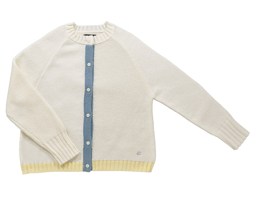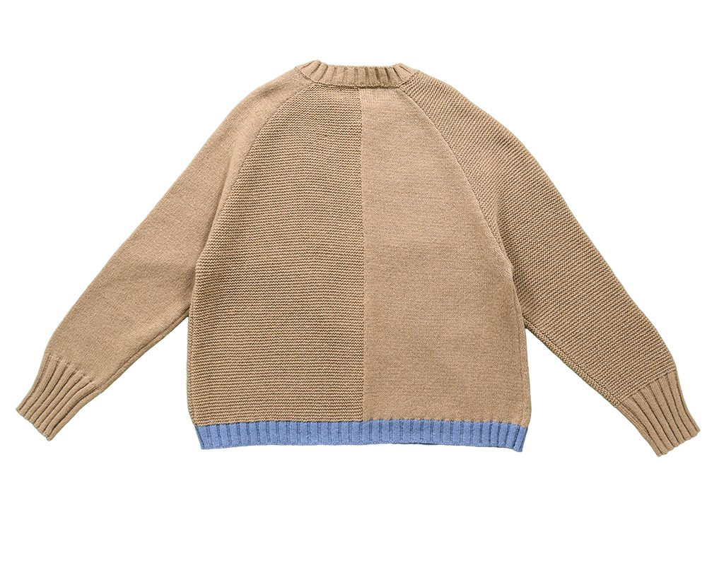 柔らかな手触りが魅力のファンシーヤーンを使用したカーディガン。前立てと裾には配色を効かせ、全体の印象を引き締めました。身頃と袖は天竺の表編みと裏編み、2種類の編地でパッチワーク風に仕上げた遊び心のあるデザイン。シンプルなスタイリングに羽織るだけで、コーディネートのポイントになる一枚です。