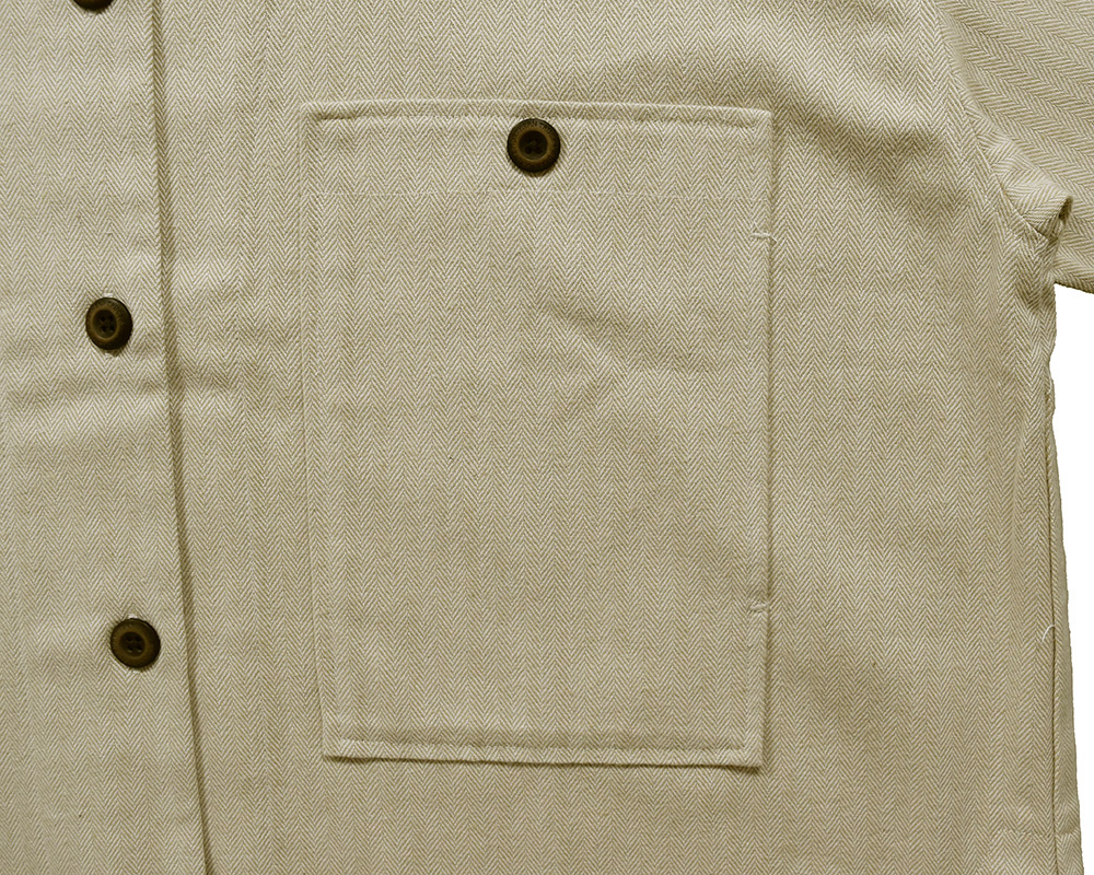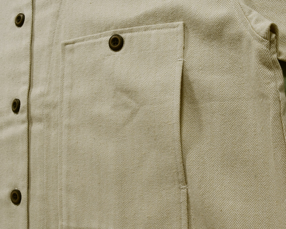 ウォーム感のある柔らかいへリンボンツイル素材を使用した、リラックス感のあるジャケット。大きめのポケットがデザインのポイントで、横から手が入れられる仕様のため、使い勝手も抜群です。袖口にはリブを施し、カジュアルな雰囲気とフィット感をプラス。軽い着心地でさっと羽織れ、季節の変わり目や冬の重ね着スタイルにも活躍するアイテムです。