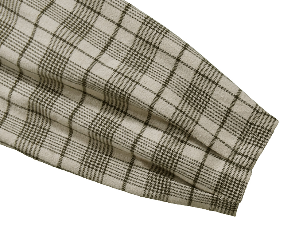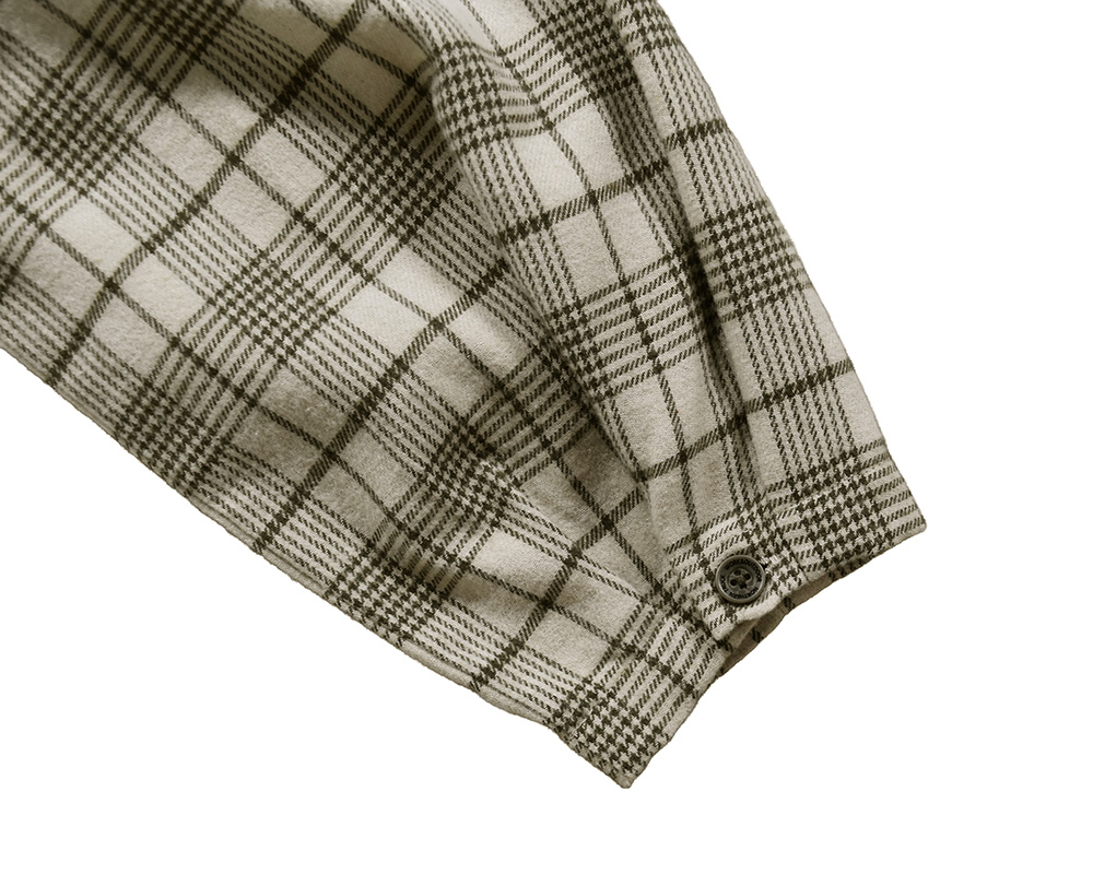 | 素材 | 《素材》先染グレンチェック【生地洗い+表起毛+製品洗い】 《混率》ポリエステル78% 綿20% レーヨン2% |