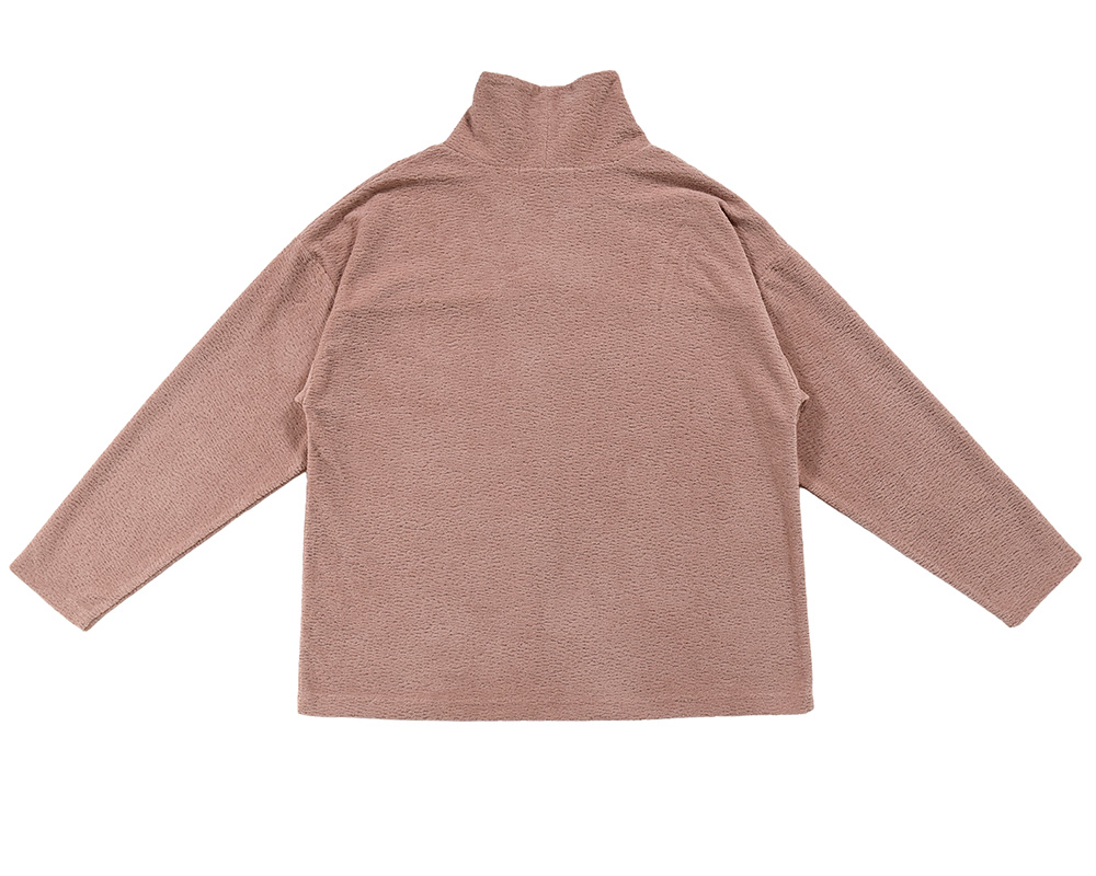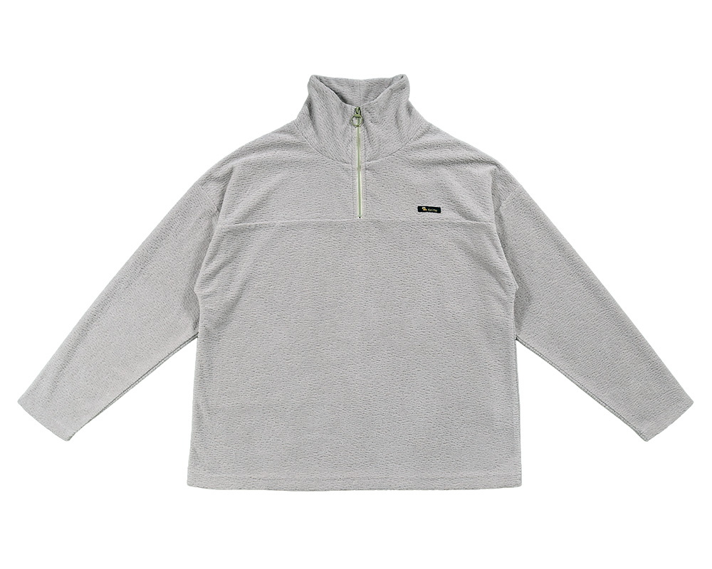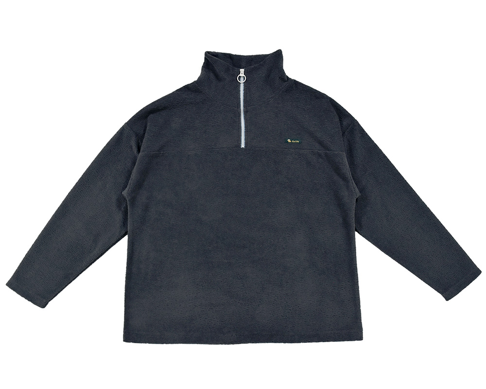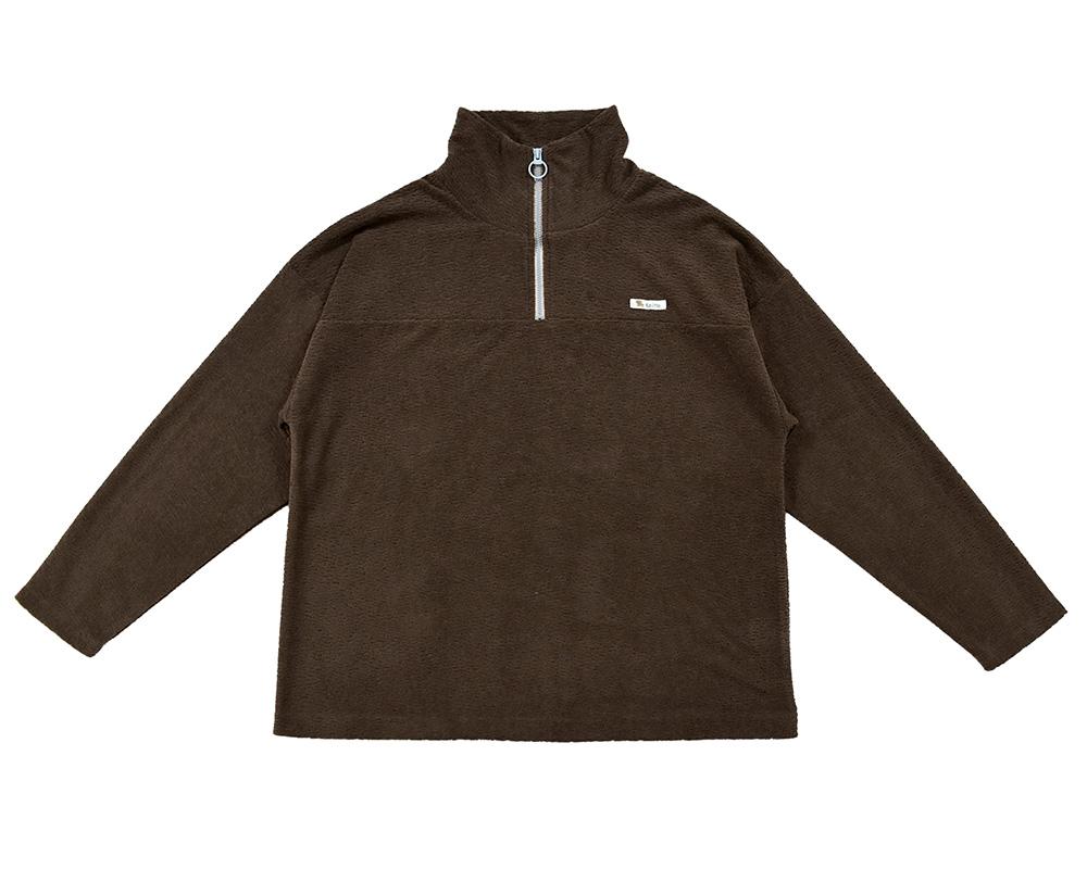 ハイネックで首元までしっかり暖かいプルオーバーです。ファスナーをあけてタートルネックなどのインナーを合わせたレイヤードコーデもおすすめ。やわらかさとモコモコ感を兼ね備えたカットソー生地を使用。フロントのカラーファスナーと、マフラーや帽子をつけたチャロモチーフのピスネームがポイントです。