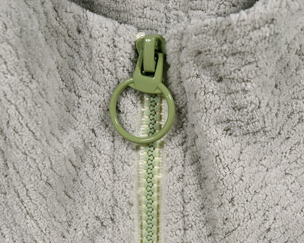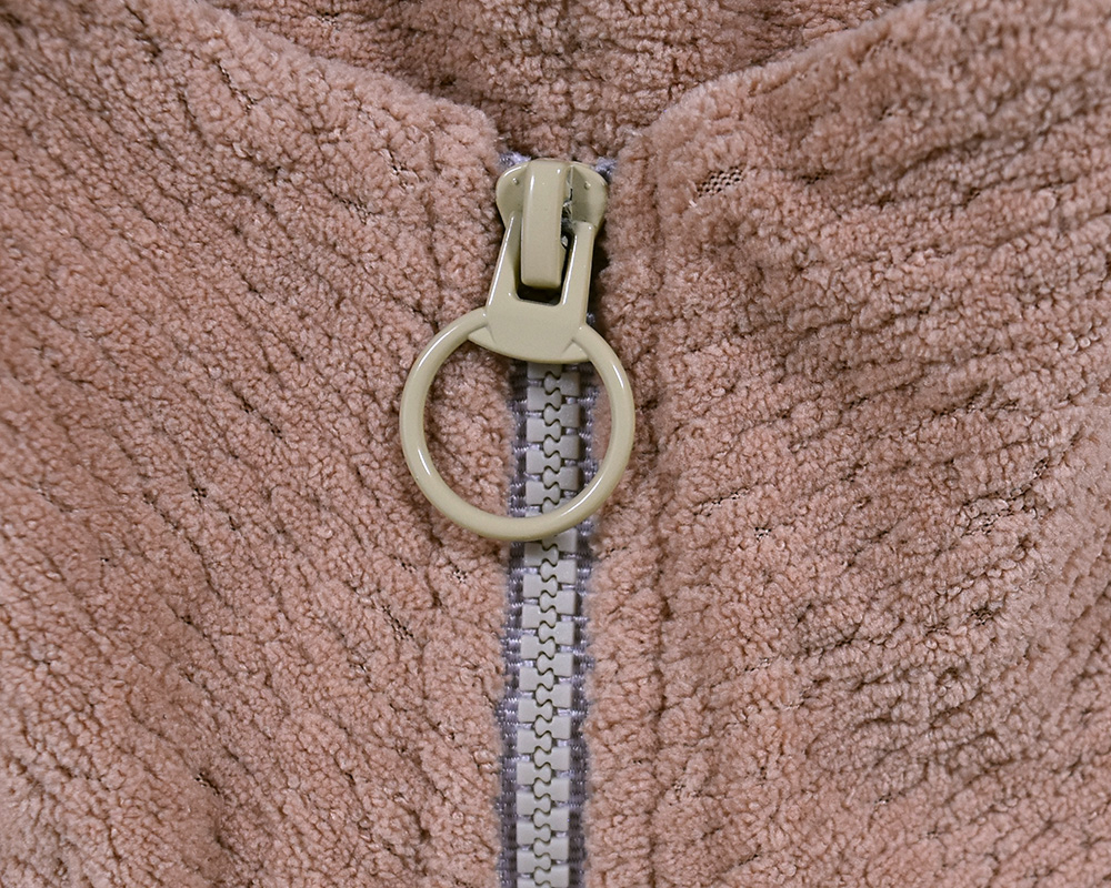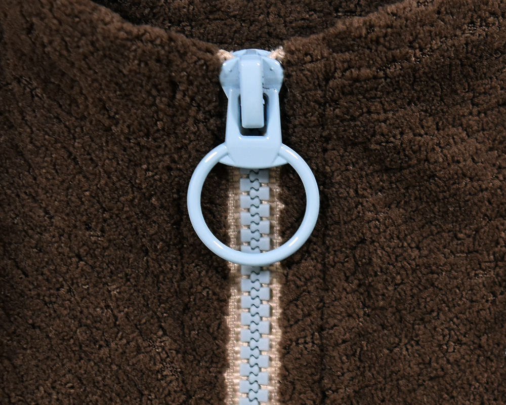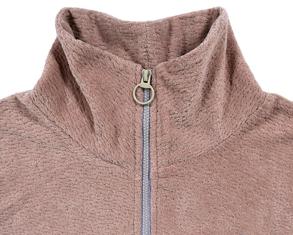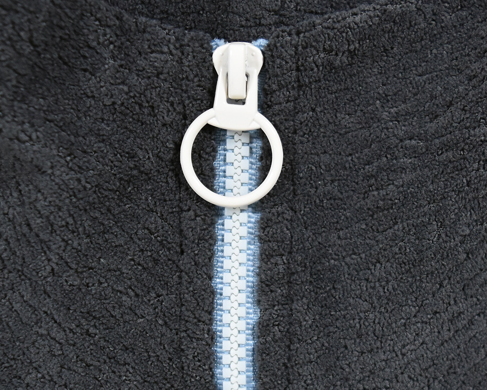ハイネックで首元までしっかり暖かいプルオーバーです。ファスナーをあけてタートルネックなどのインナーを合わせたレイヤードコーデもおすすめ。やわらかさとモコモコ感を兼ね備えたカットソー生地を使用。フロントのカラーファスナーと、マフラーや帽子をつけたチャロモチーフのピスネームがポイントです。