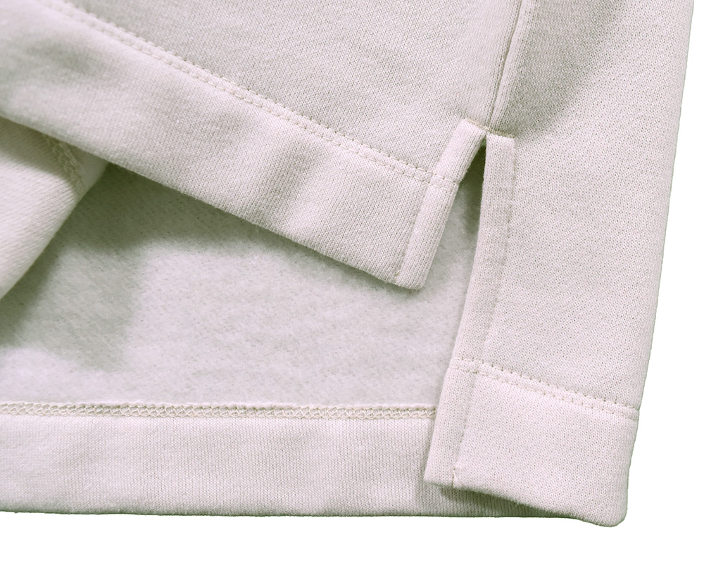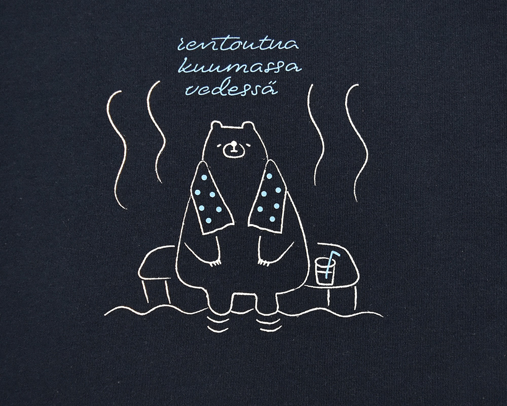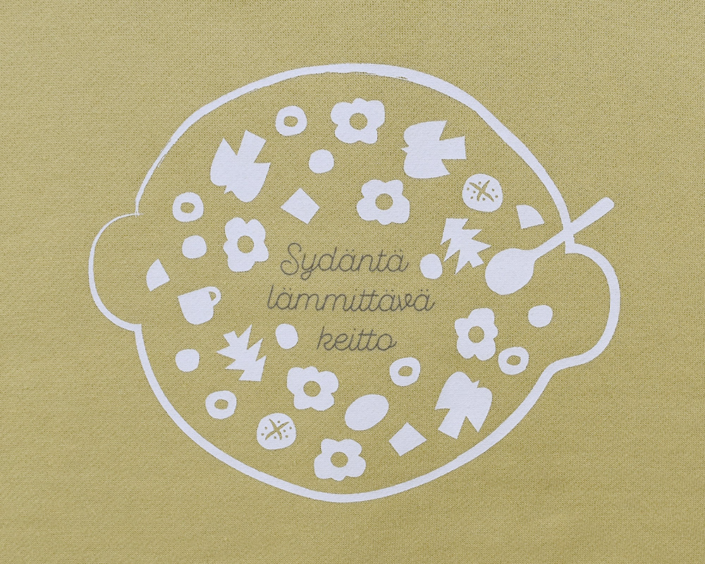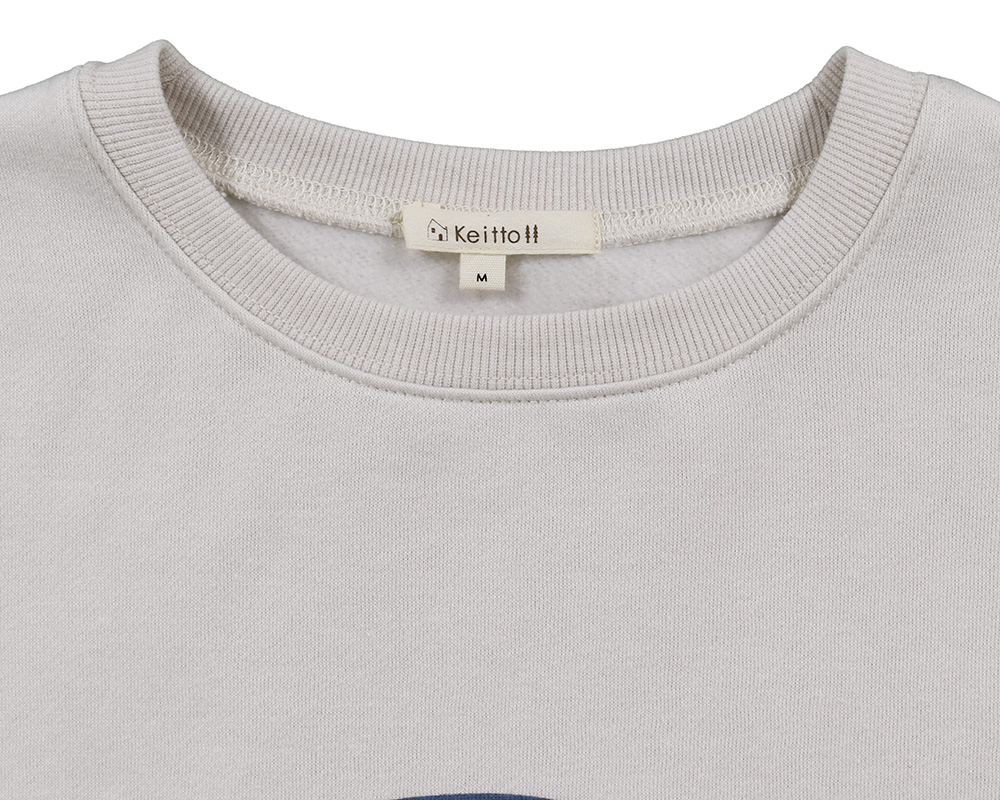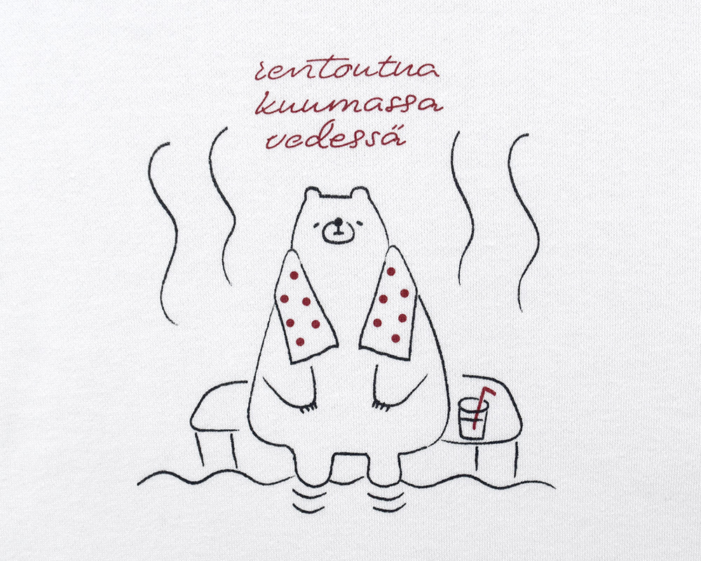 前後差のある丈感がポイント。ふわふわの裏起毛でやさしい肌触りです。足湯でほっこりとくつろぐシロクマや、むすびつながるイベントをスープに見立てたプリントで、心も体もぽかぽかあたたまる世界観を表現しました。