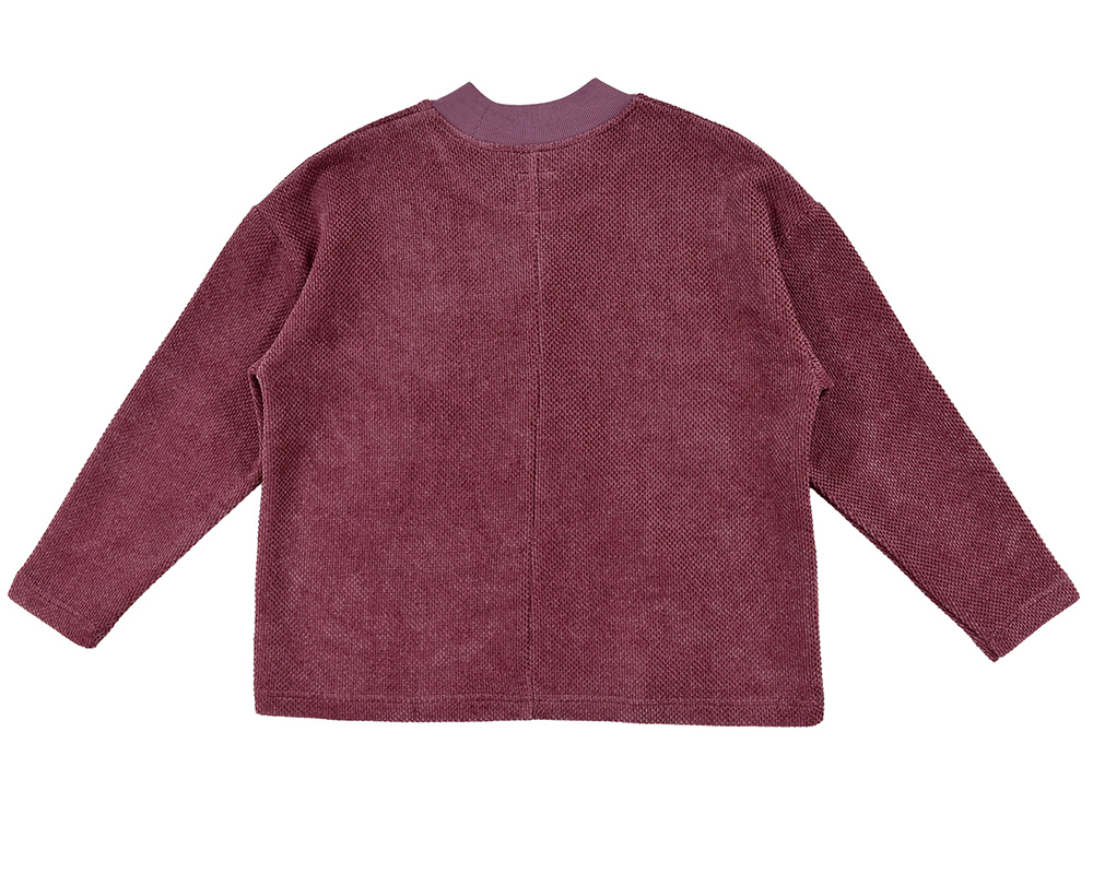 ハイネックのリブ仕様で首元もあたたかなプルオーバーです。モールニットソー生地を使用し、上品な光沢感があります。ブランドネームは冬から春をイメージしたグラデーションに、植物などのモチーフを添えた、シャツ(KKMS5733)とおそろいのデザイン。