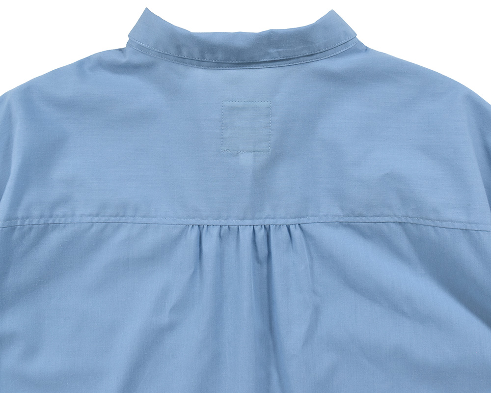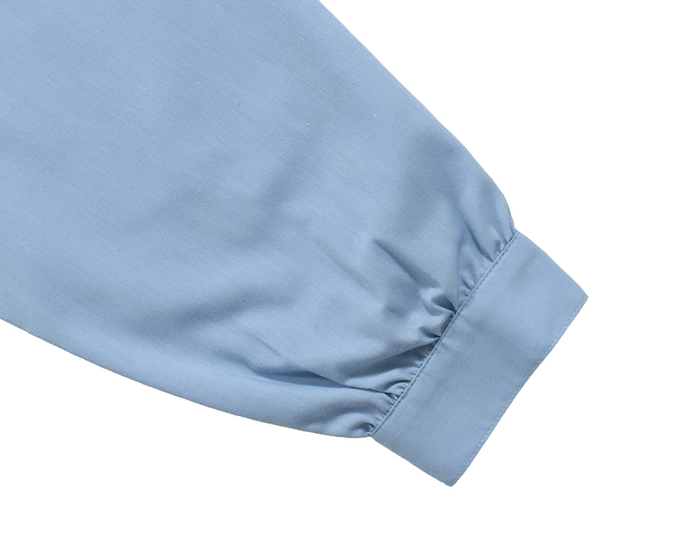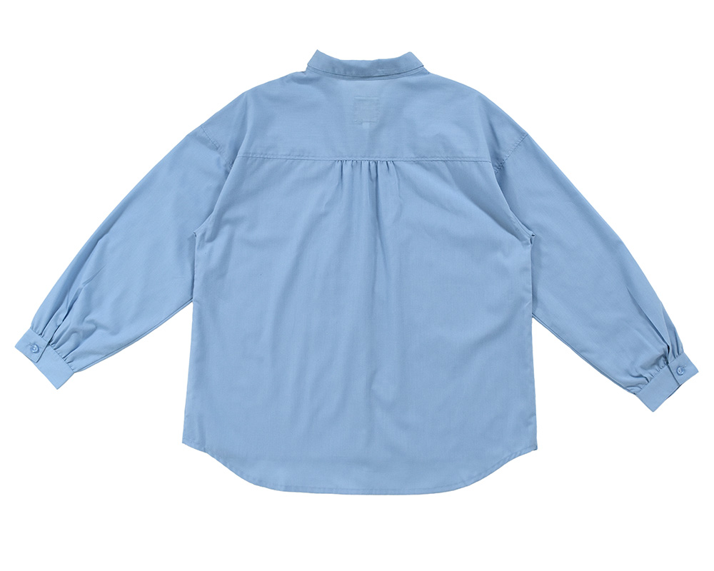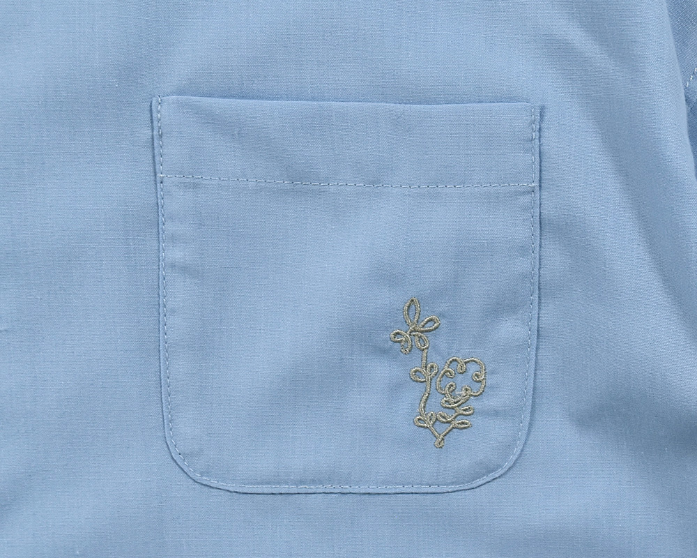 襟を小さめに仕上げたデザインで、ニットのインナーにも、一枚着にも使える便利なシャツです。お手入れしやすく、長く着られる綿混のポリエステル生地を使用。ブランドネームには、冬から春へ移り変わるイメージをグラデーションと植物や小鳥などで表現し、「春へ向かって」というフィンランド語のロゴを添えました。胸ポケットにはブランドネームとおそろいの線描きの植物刺繍入り。