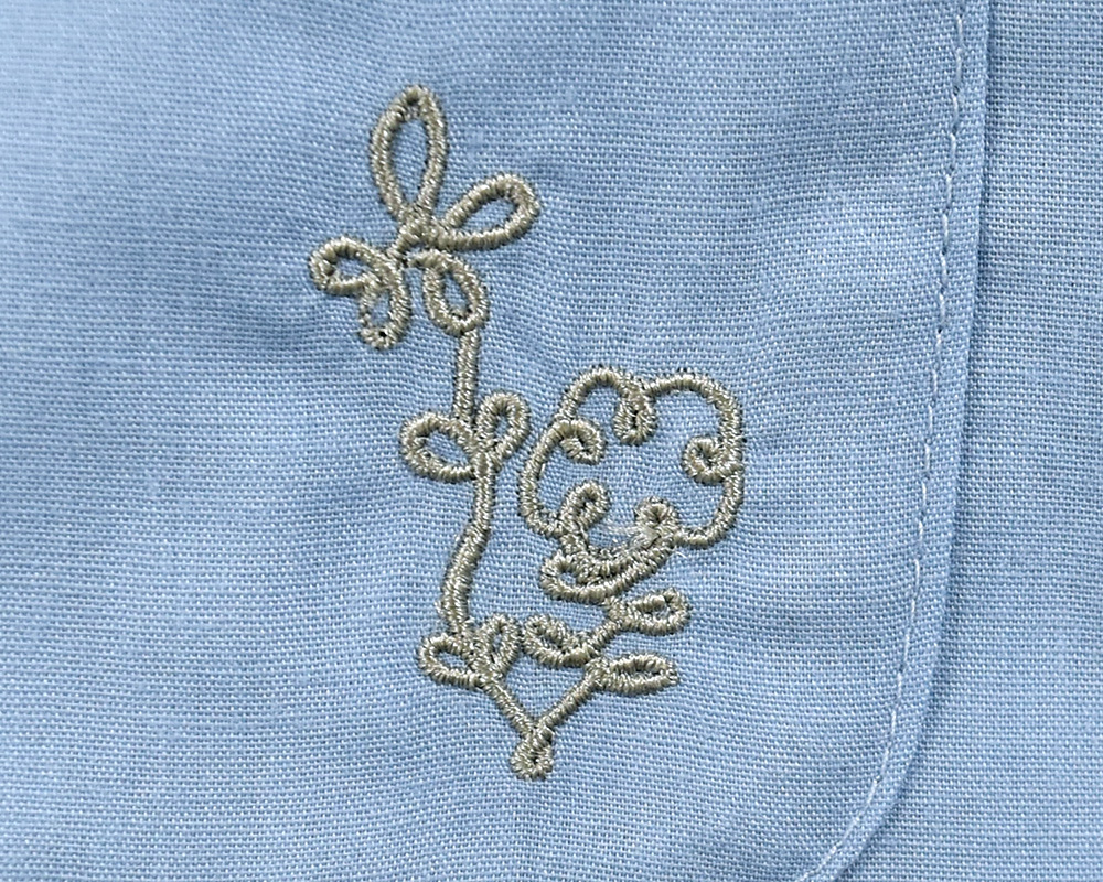 | 素材 | 《素材》ポリエステル 綿 平織り 微起毛【製品洗い】 《混率》本体:ポリエステル80% 綿20% 刺繍糸:ポリエステル100% |