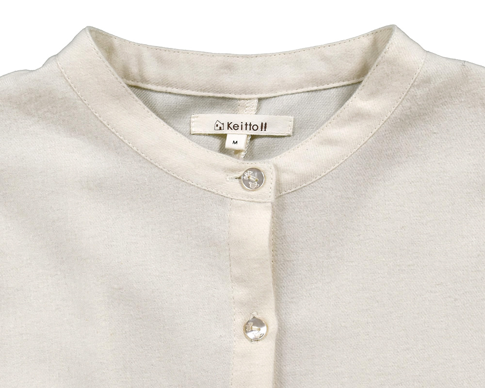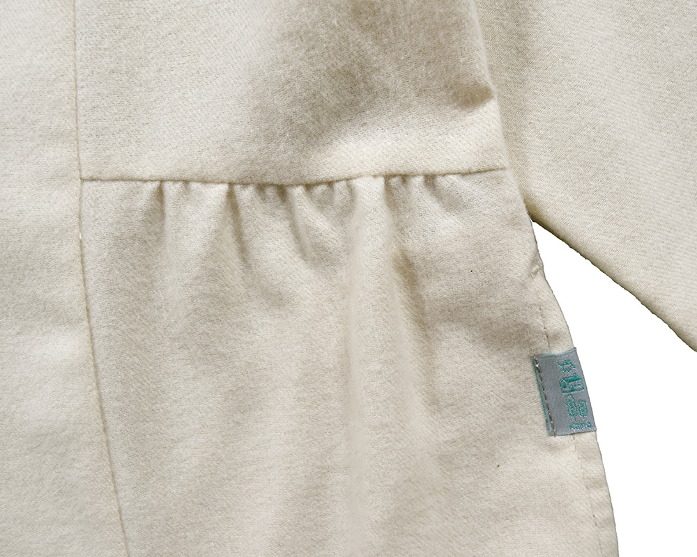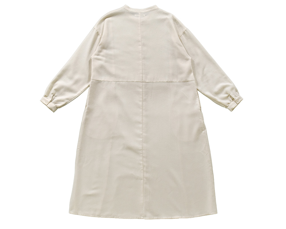 ボタンを留めればワンピース、開ければライトアウターとして活躍する着回し力の高い一枚です。綿を混ぜて自然な風合いとやさしい肌触りに。微起毛加工でさらにあたたかく仕上げまた。FIKAモチーフの彫り柄ボタンと、森の庭カフェをイメージしたピスネームがポイントです。