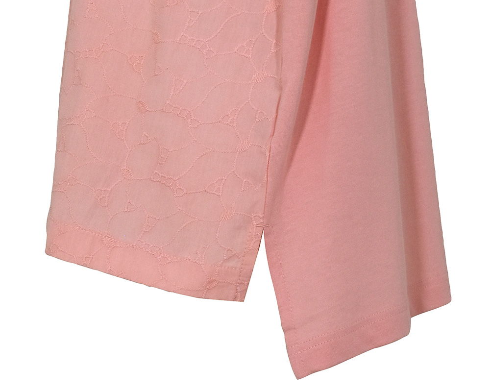 | 素材 | FABRIC:コットン天竺×コットン平織り刺繍 QUALITY:綿100% 生地洗い ※ウォッシャブル ※天然素材 |