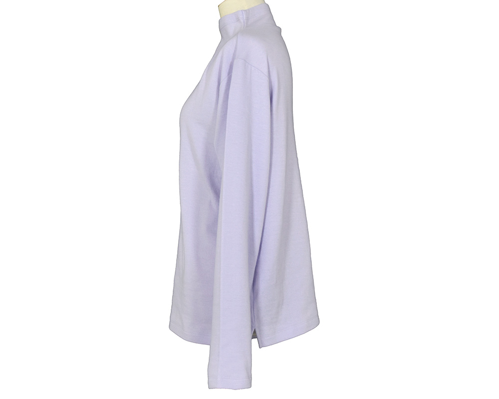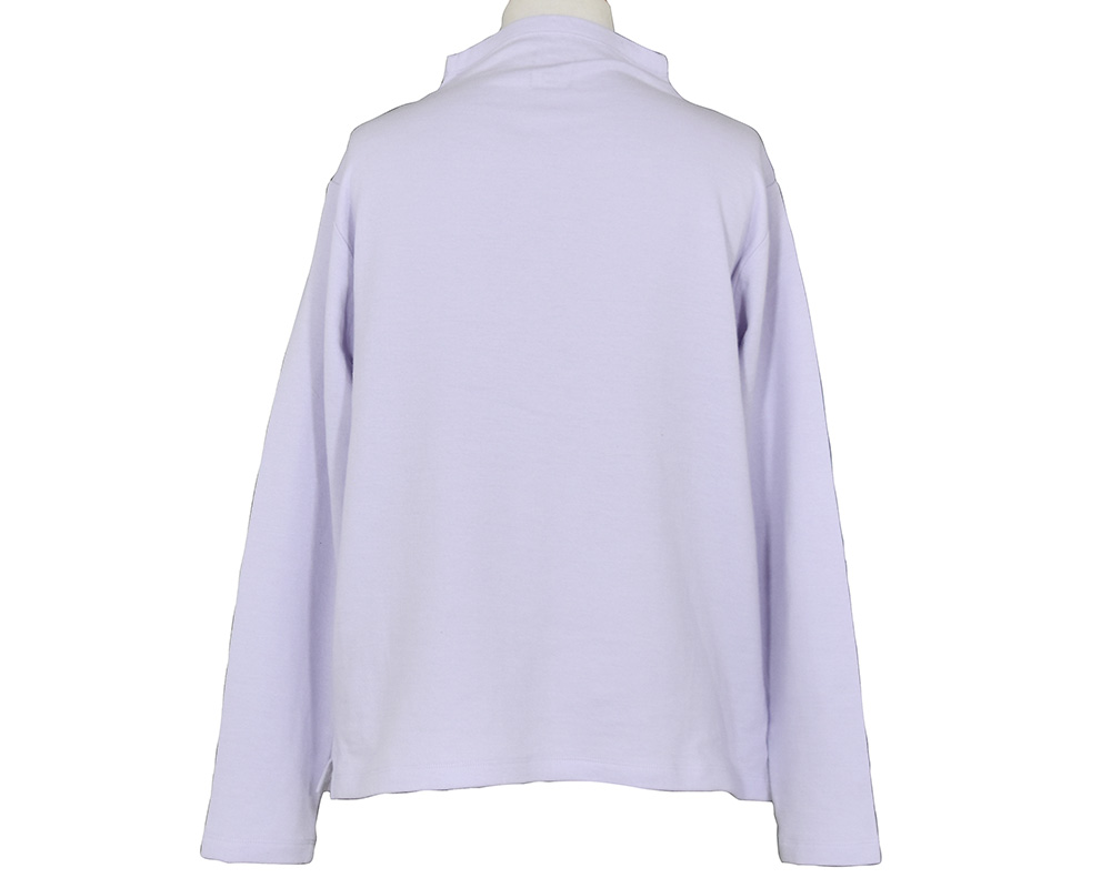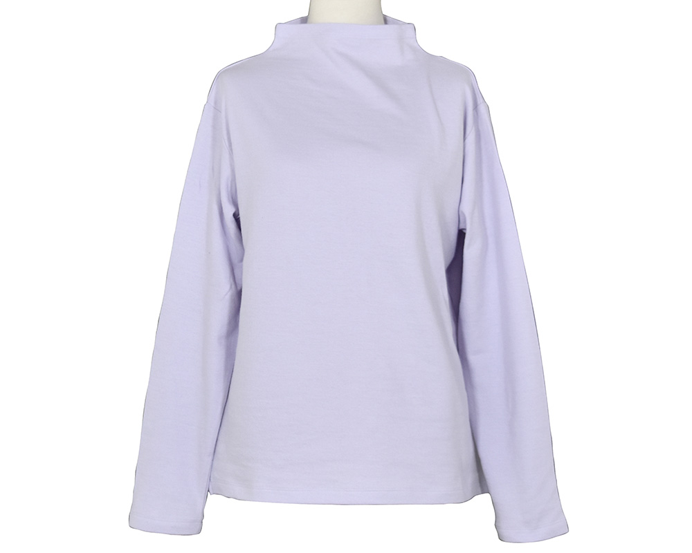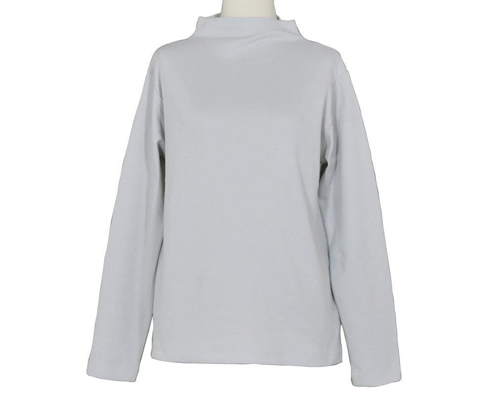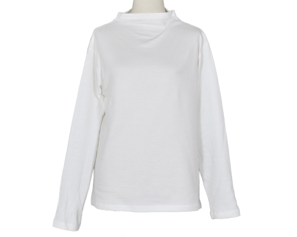 毎回好評のコットン接結天竺素材のボトルネックプルオーバーです。首への締め付け感が無く、すっきりとした印象のボトルネックデザインです。ニットやシャツとのレイヤードで、コーディネートのアクセントにも重宝します。