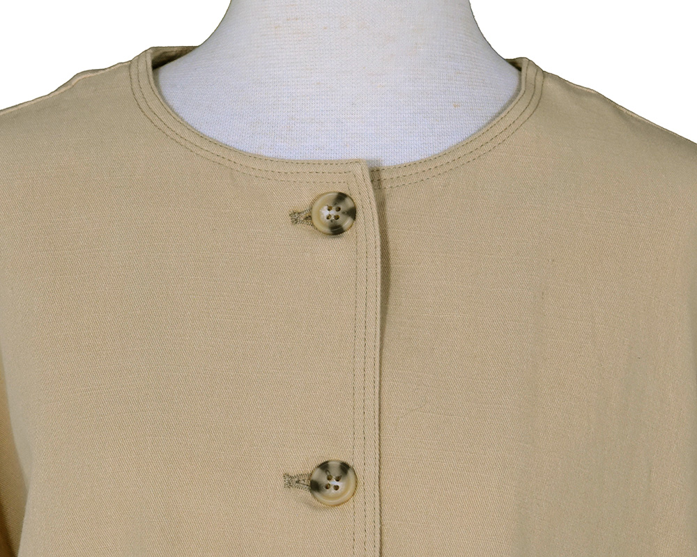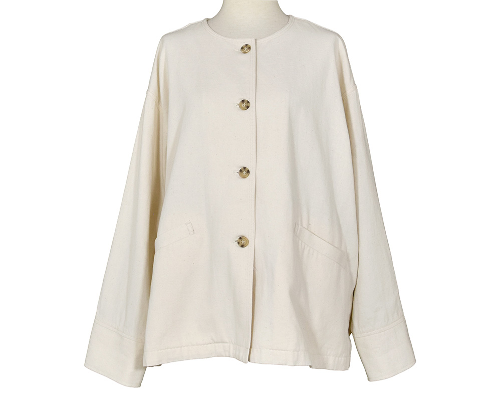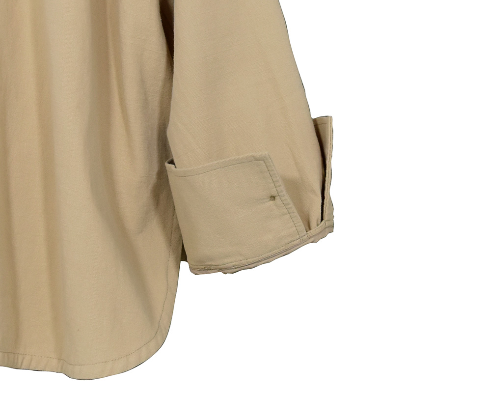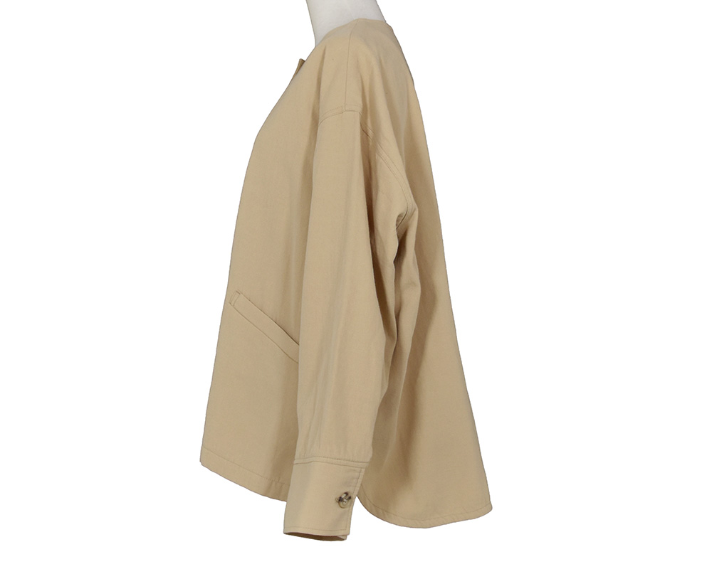 ラウンドしたバックヘムラインがカジュアルで軽い印象の春アウターです。ゆとりのあるシルエットなので春先は厚手のニットに、暖かくなるとブラウスなどの軽装に羽織るなど、レイヤードスタイルとの相性が良い1枚です。袖口のカフスは折り返せる仕様です。