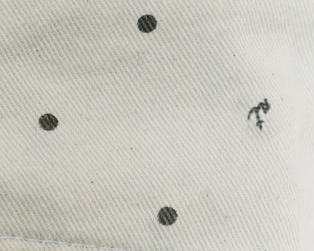 | 素材 | 《素材》デニム 9oz【バイオウォッシュ+ブリーチ +サンドブラスト】 ツイル 【生地洗い+製品洗い】 《混率》綿100% |