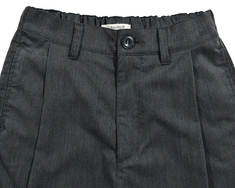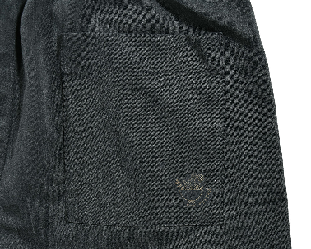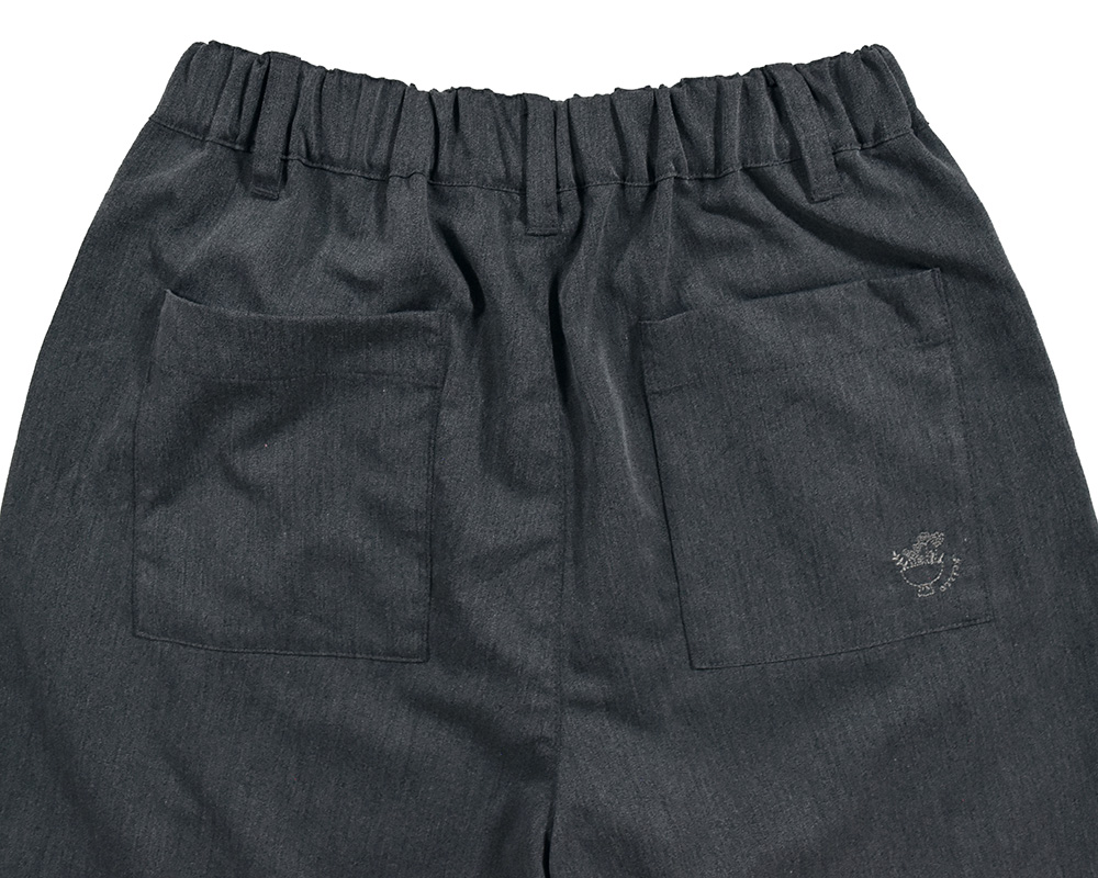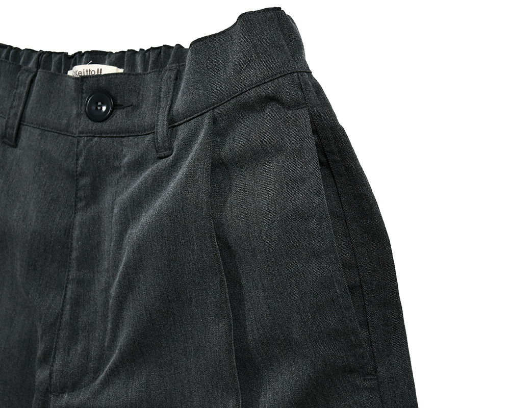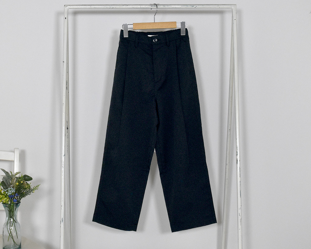 長めに入れたタックが、脚のラインをすっきりと見せてくれるテーパードパンツです。キャミソール(KAKP6089)と同じ生地を使用し、セットアップでの着こなしも楽しめます。キャミソール(KAKP6089)につけたプレートとおそろいの刺繍が、後ろ姿にそっとつながりを添えます。