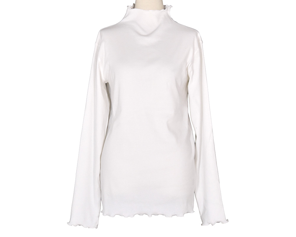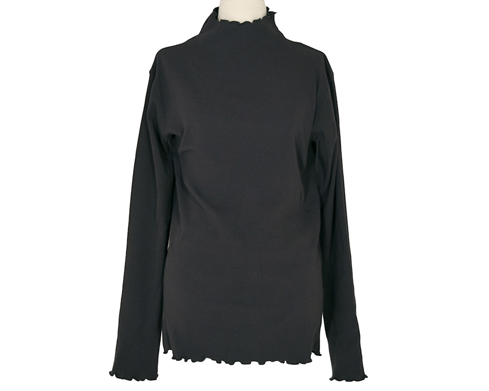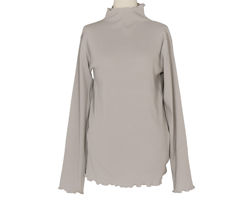 衿口と袖口をフリルにし、程よく体に沿うシルエットのインナーです。スタイリングのアクセントになり、シャツともレイヤードしやすいので色違いで揃えて頂くのもオススメです。