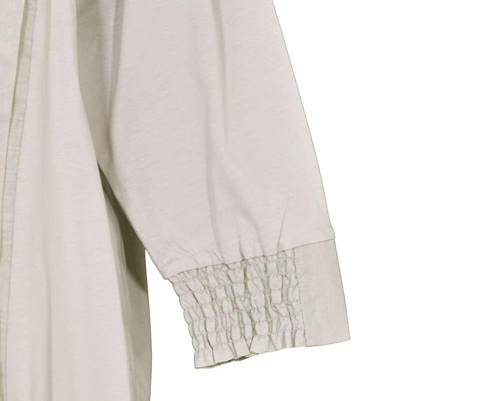 | 素材 | FABRIC:コットンシルケット天竺×リネンコットン平織り QUALITY:綿100%×麻55% 綿45% 生地洗い ※ウォッシャブル |