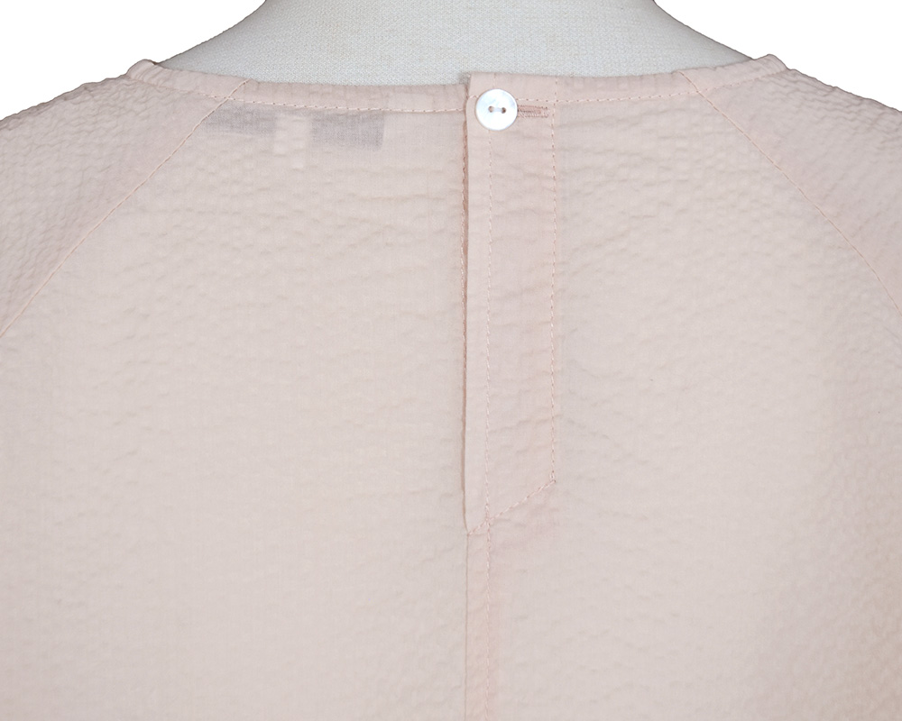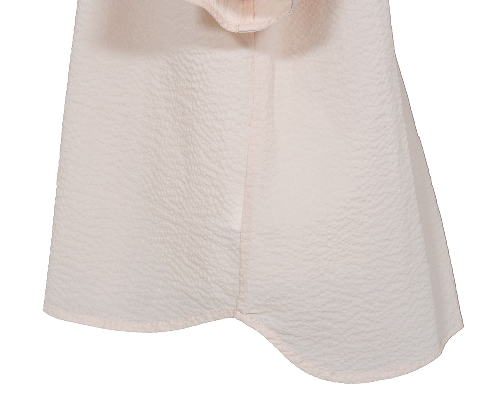 コットン素材にストライプ状の凹凸を施したリップル素材です。軽やかでシワが目立ちにくく、扱いやすいのも嬉しいポイントです。先染めストライプと無地を揃えた、全3色展開です。