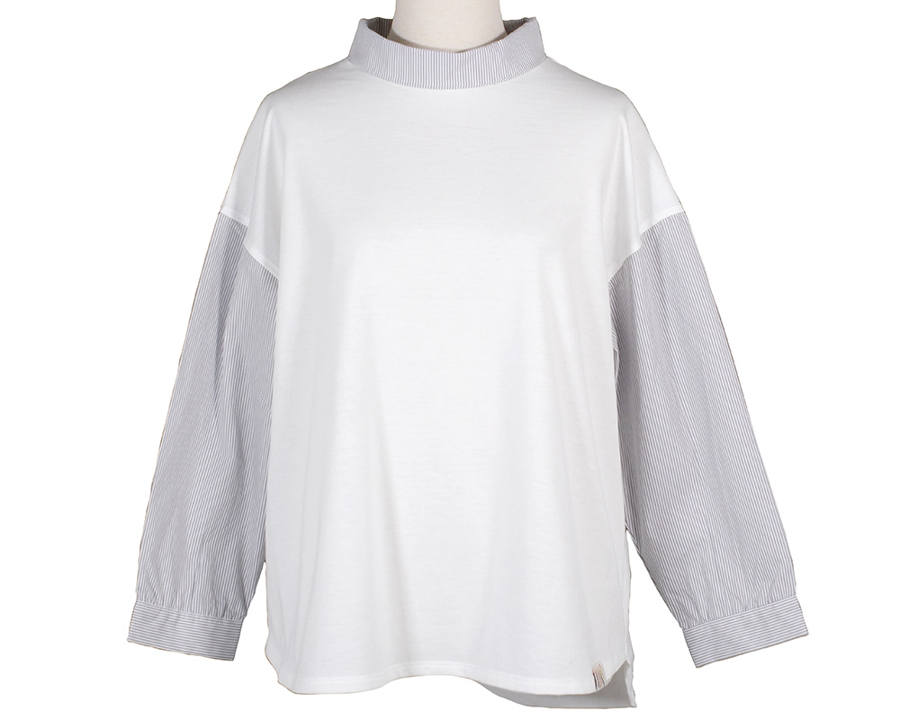 | 素材 | 素材:[本体]ポリエステル 綿 MVS天竺 [布帛部分]#10:綿 平織りストライプ #30、#32、#60:ポリエステル 綿 混率:[本体]ポリエステル66% 綿34% [布帛部分]#10 :綿100% #30、#32、#60:ポリエステル86% 綿14% |