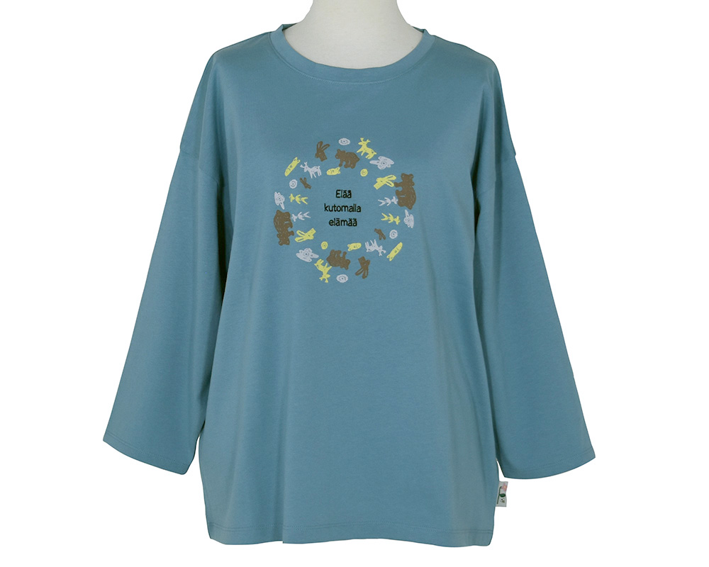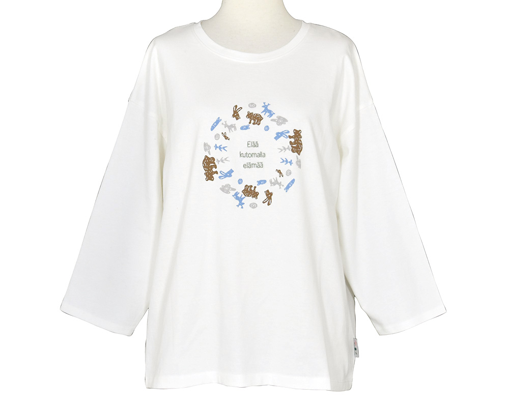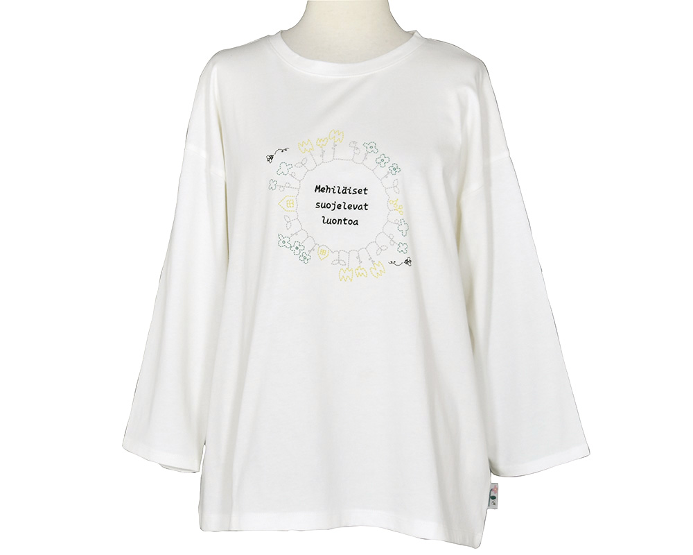 いきものと植物、それぞれの循環をテーマにしたプルオーバーです。ゆったりとしたシルエットで、デイリーに活躍します。ほどよい厚みの天竺生地で、自然のモチーフに合わせたやさしい素材感が魅力です。動物や人、微生物など、いきものの命の循環と、ミツバチが花粉を運び植物をつなぐ自然の営みをプリントと刺繍で表現。それぞれの図案に合わせたピスネームも添えました。