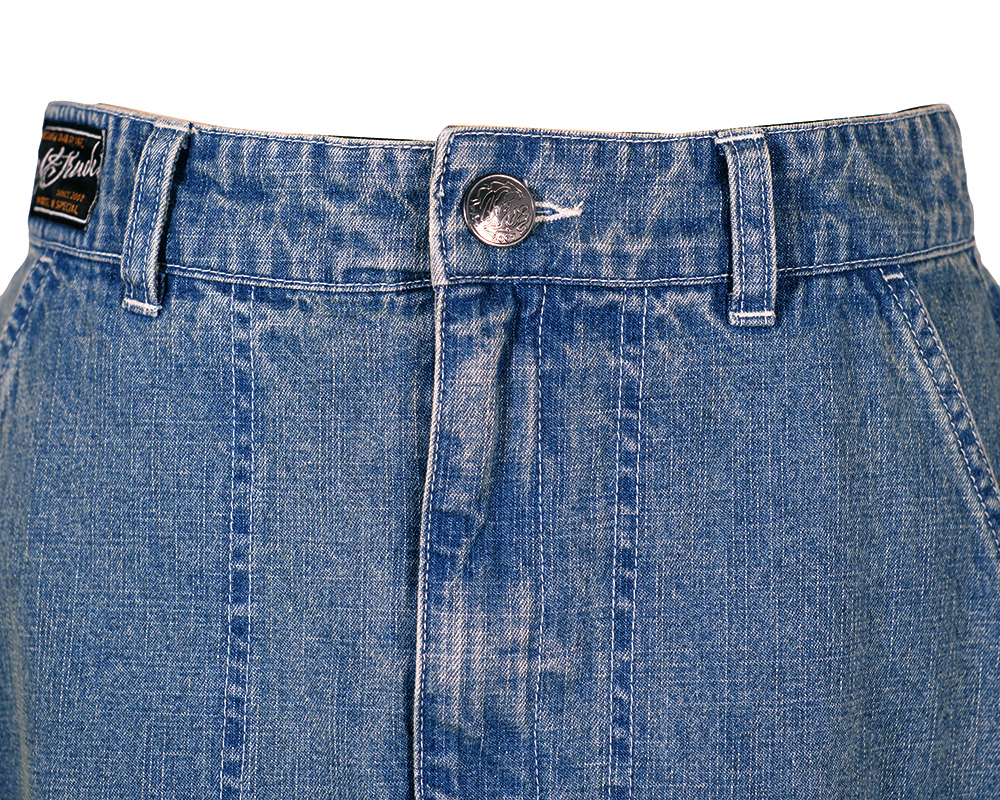 | 素材 | 《素材》デニム 8.5oz 【インディゴブルー:ブリーチ+オーバーダイ+ケミカル】 【インディゴネイビー:バイオウォッシュ】 《混率》綿100% |