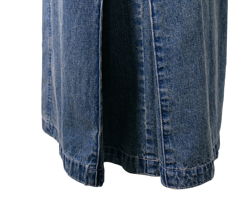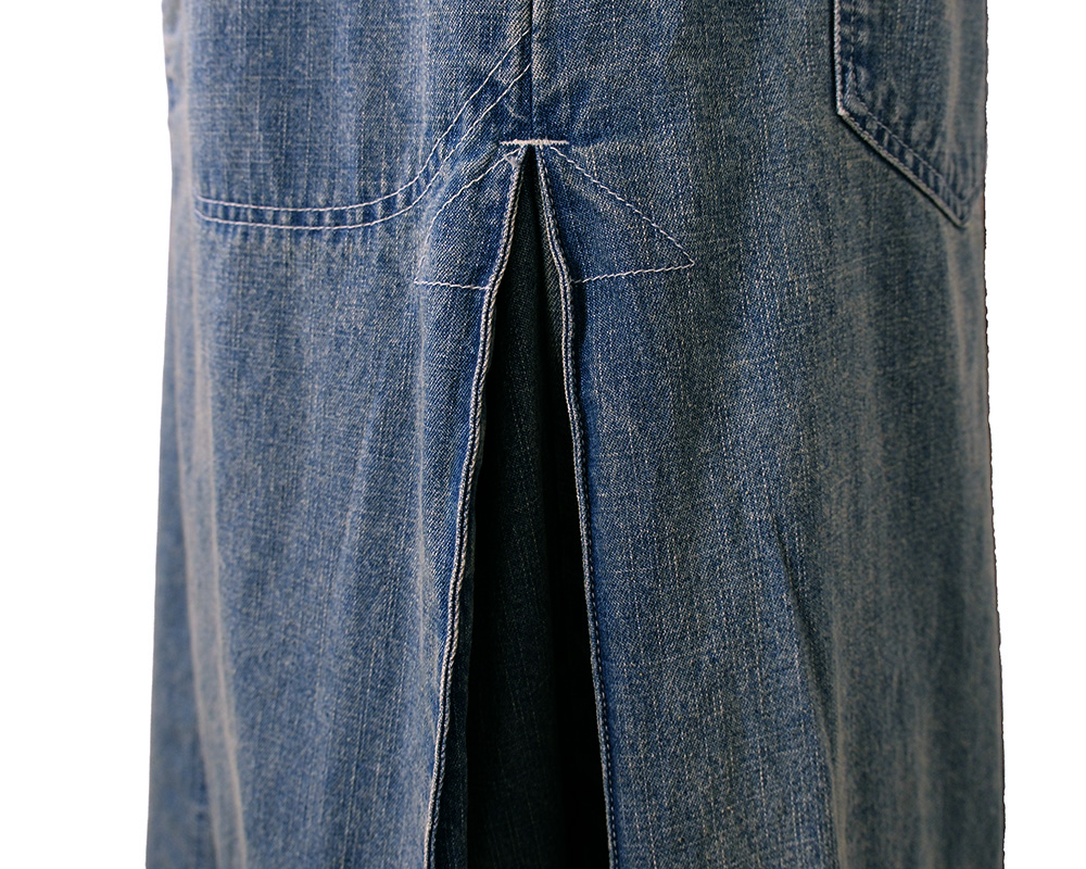 軽やかさと適度なハリを兼ね備えた、8.5オンスデニムを使用したロングスカート。扱いやすい中肉厚のデニム素材で、オールシーズン着まわしやすいのが魅力です。インディゴネイビーはこなれ感の出るバイオウォッシュ仕上げ、インディゴブルーはブリーチ+オーバーダイ+ケミカル加工を組み合わせることで、深みのあるヴィンテージライクな表情に。後ウエストは一部ゴム仕様で、リラックスした穿き心地を保ちながら、前からの見た目はすっきり。カジュアルにも女性らしくも合わせやすい、万能デニムスカートです。