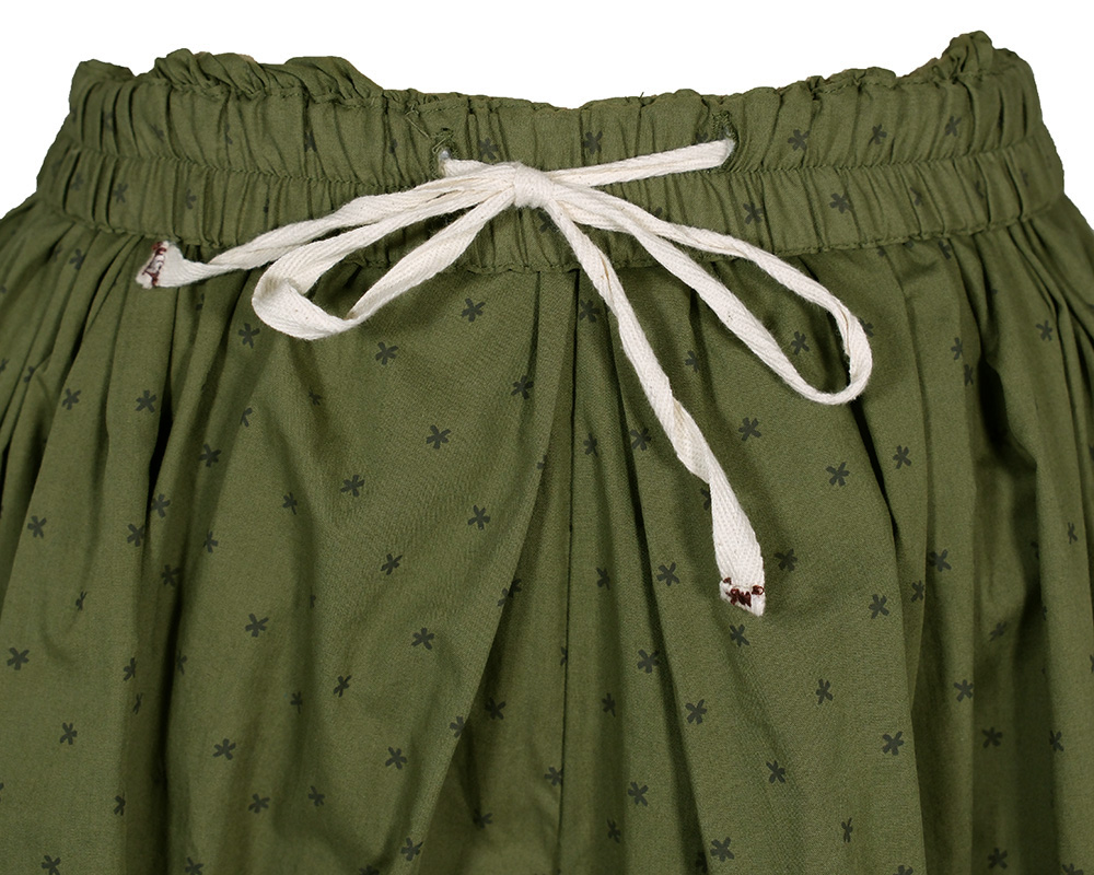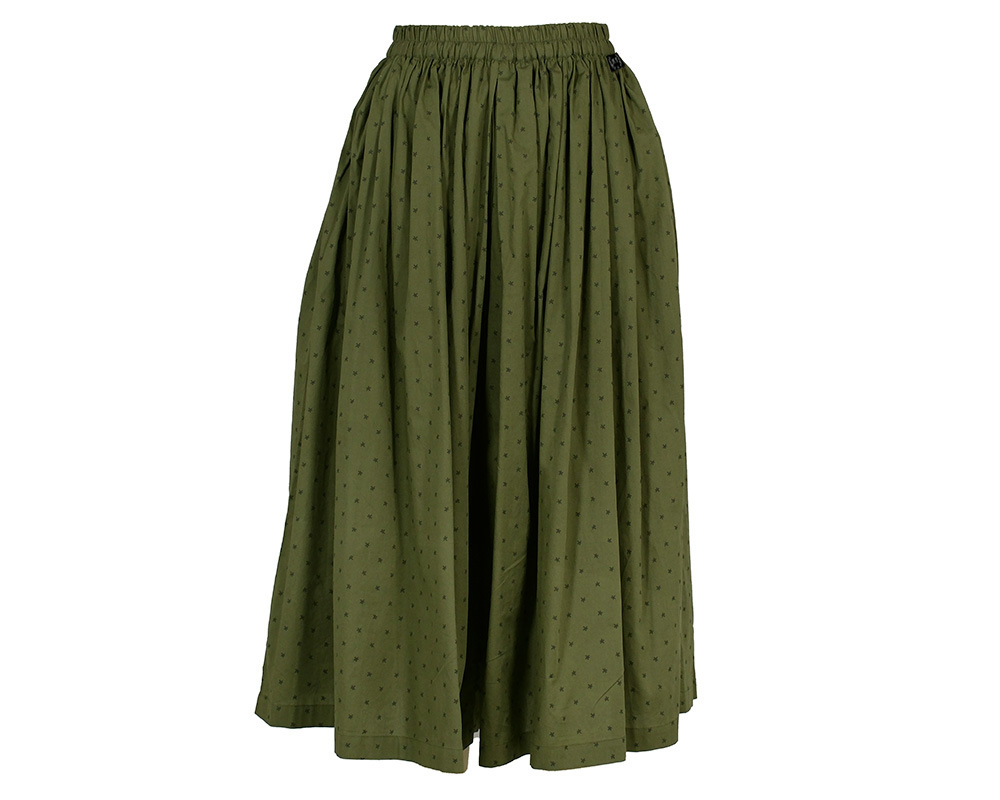 華やかな花柄プリントが目を引く、ワイドシルエットのギャザーパンツ。 一見スカートのように見えるほどたっぷりと生地を使用し、動くたびにふんわりと揺れて女性らしい柔らかな印象を演出します。 体形を拾わないシルエットとゴム仕様のウエストで、快適に着用いただけます。 トップスを選ばず、シンプルなTシャツやブラウスと合わせるだけでコーディネートが決まる主役アイテムです。 同素材のブラウス(NBMV6118)とのセットアップスタイルもおすすめです。