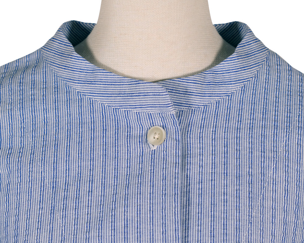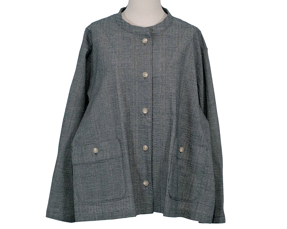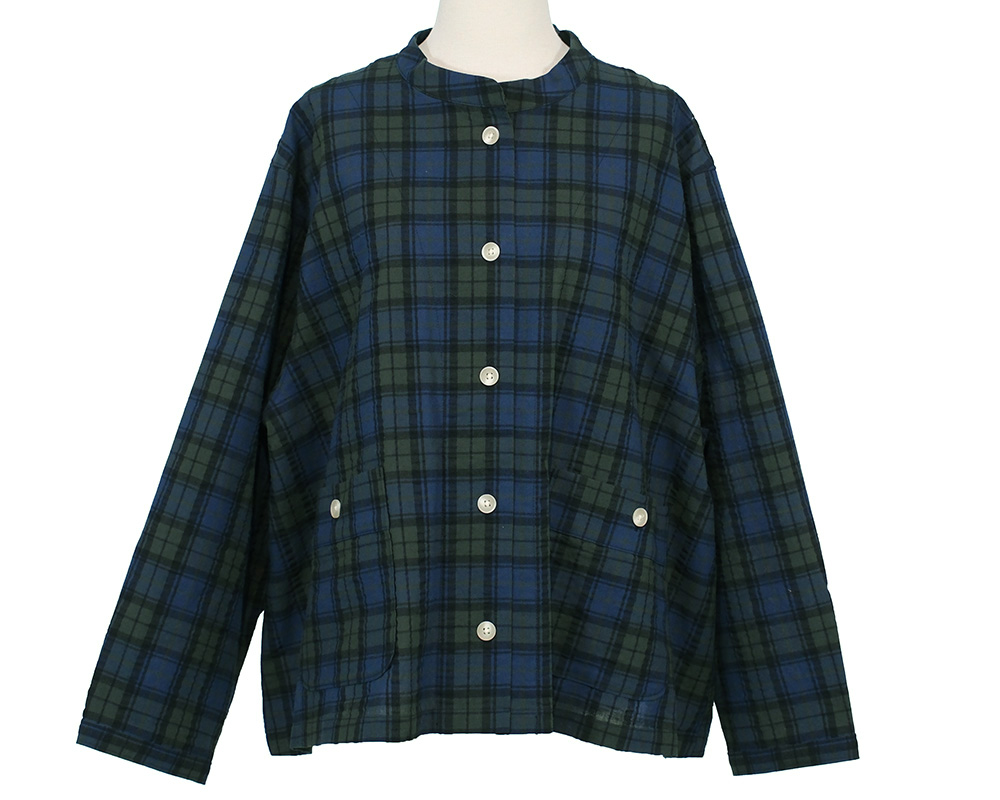 シャツ地ならではの柔らかさにジャケット仕様の仕立てを掛け合わせることで、肩肘張らないトラッドスタイルを表現。 後ろ身頃の裾上に入れたダーツとタックがふんわりとした丸みを生み、自然体の抜け感を添えています。 クラシックなチェック柄も、サッカー素材の凹凸感と軽快な風合いによって、春らしい爽やかさを演出。デニムやチノと合わせればカジュアルに、シャツやニットを重ねればトラッドな雰囲気に。 きちんと感とリラックス感をバランスよく両立した、日常に馴染む一着です。