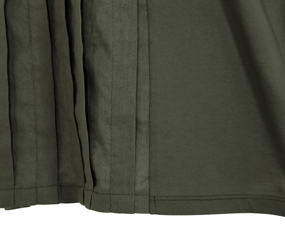 天竺ジャージとリネンコットン布帛の2素材を使用。ジャージ部分はシルケット加工で毛羽を抑えた、さらりとした肌触りが特徴です。