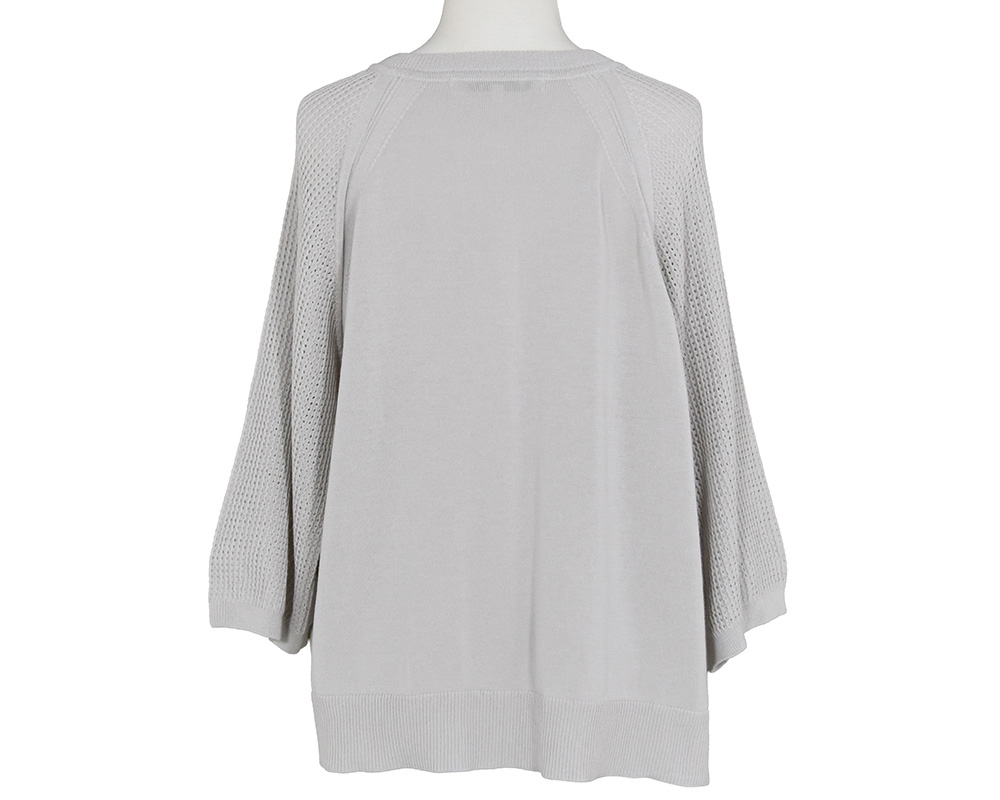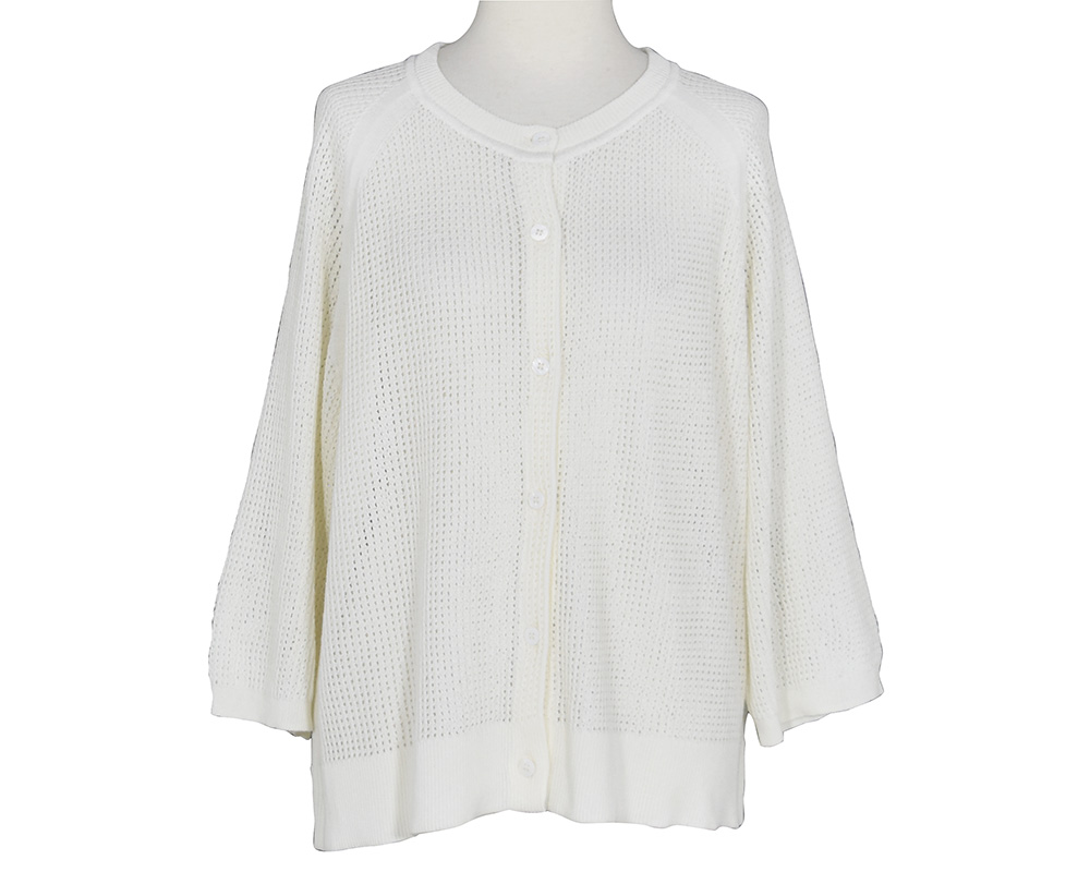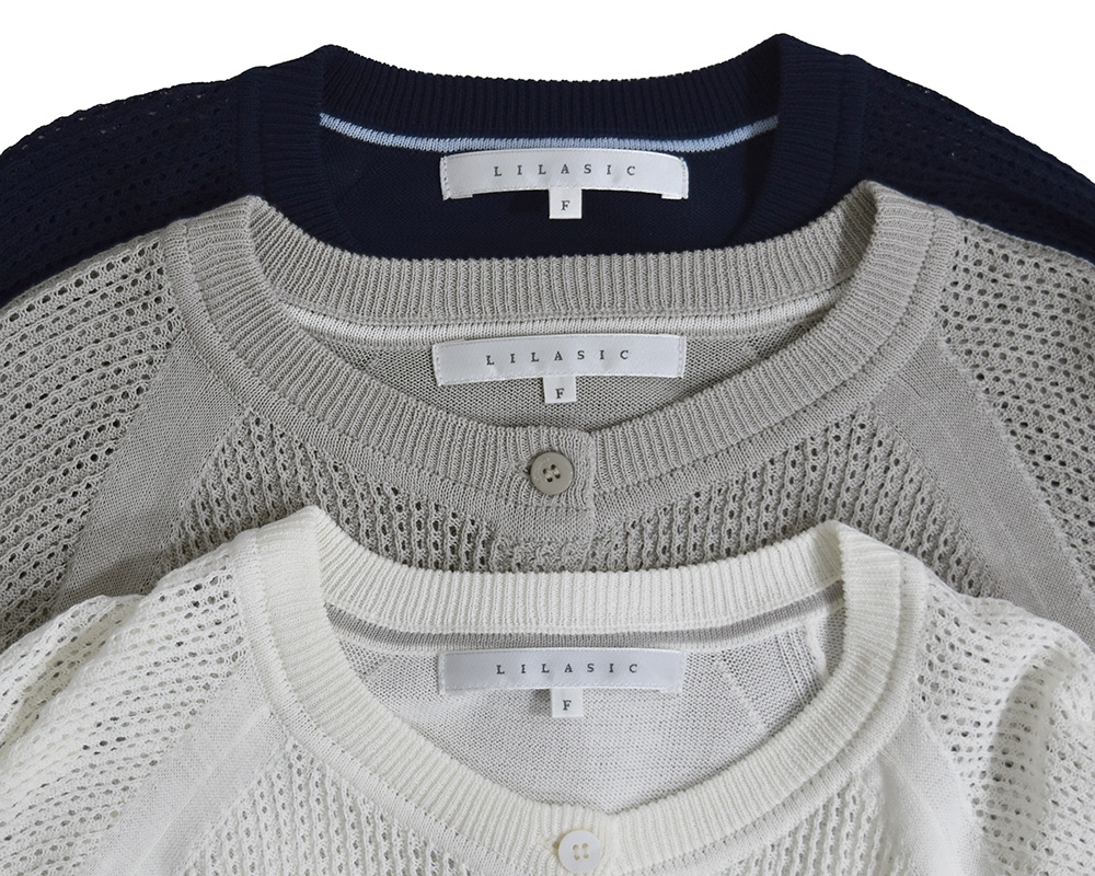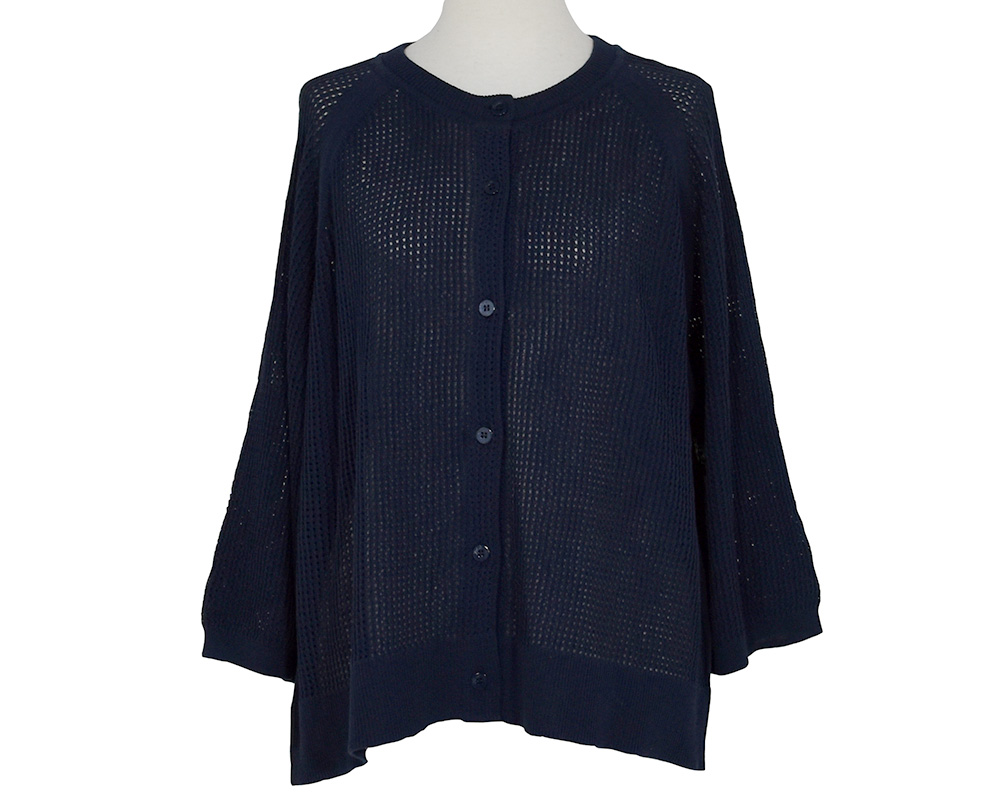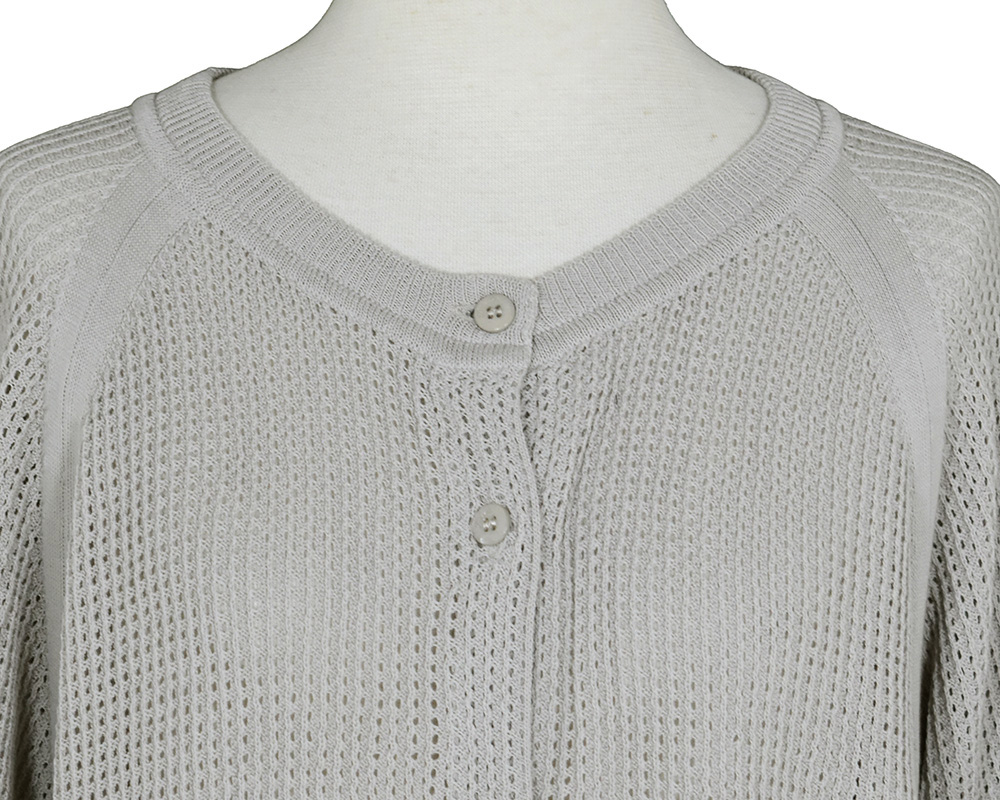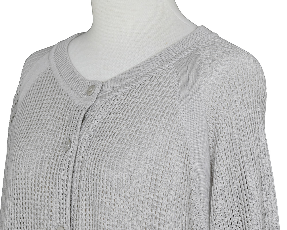 フロントはメッシュ編みで風通しがよく、日よけや冷房対策にも重宝するカーディガンです。暑い季節でも快適にはおれて、夏場の温度調整に便利なアイテムです。
