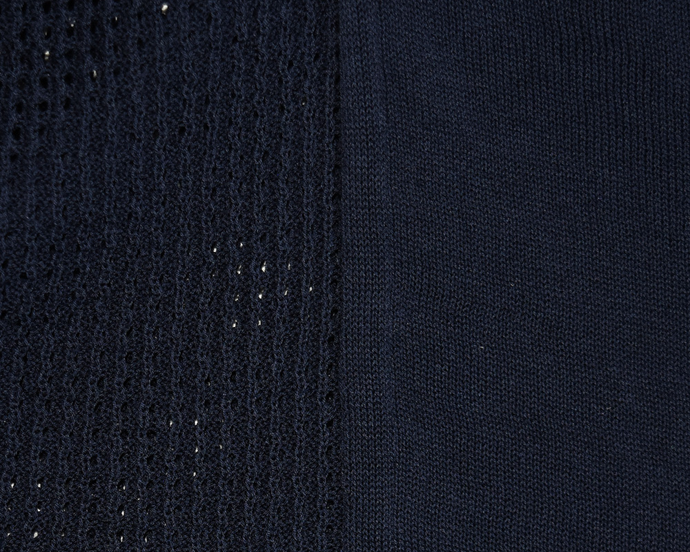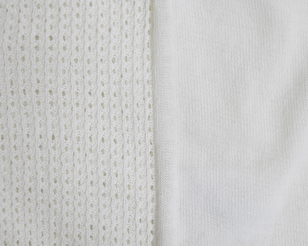 吸湿性に優れ、滑らかな手触りのコットン強撚糸を使用した、ドライタッチな肌触りが特徴の素材です。