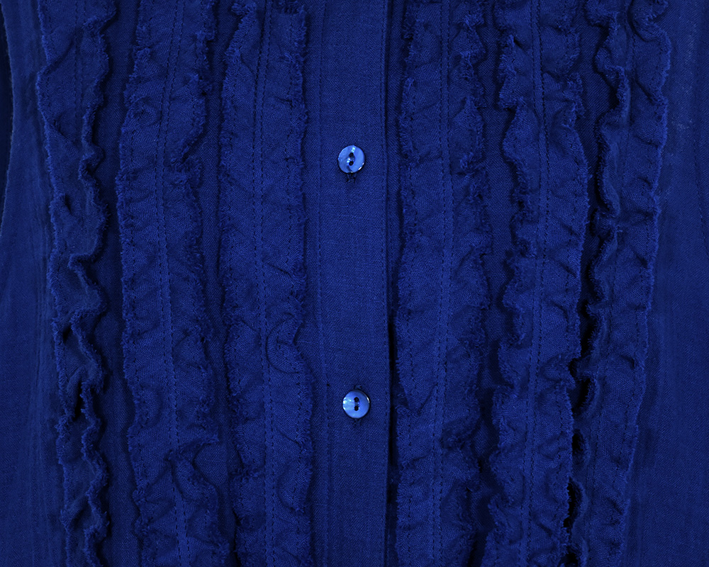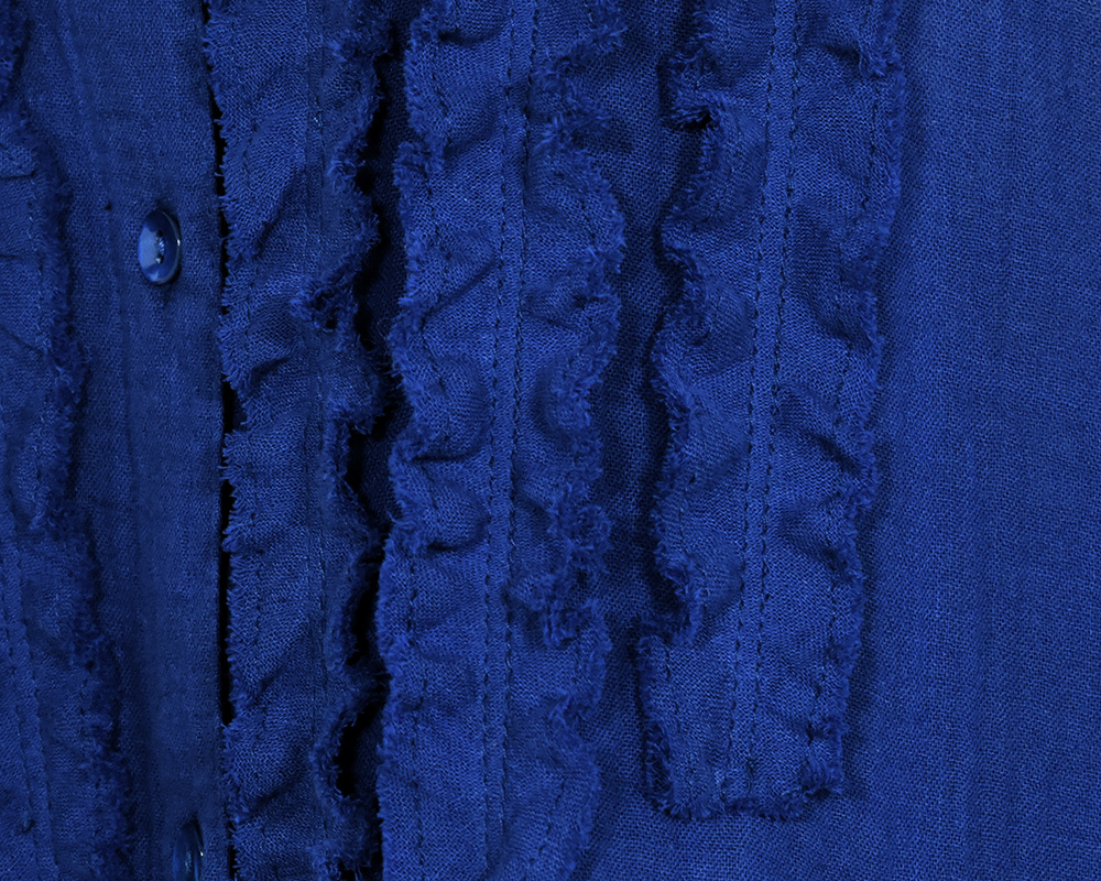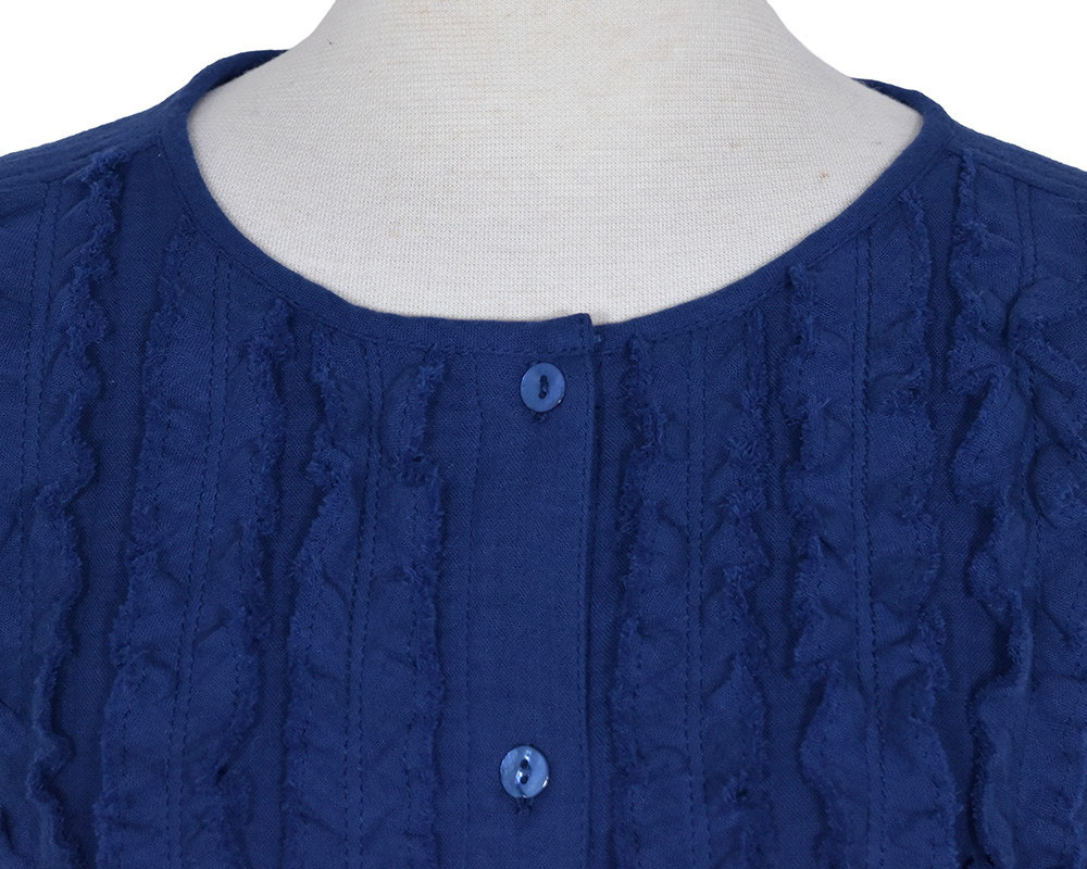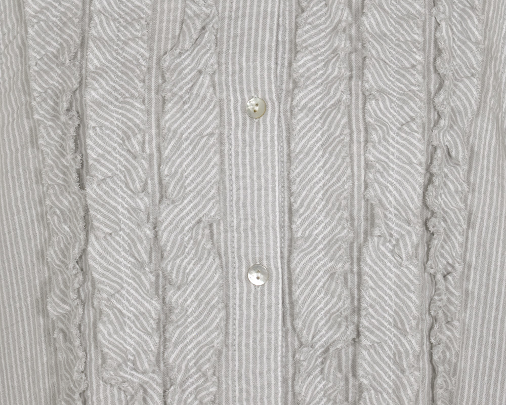 ふんわりと膨らみのある素材感を活かし、フロントフリルが華やかな印象のフレアシルエットのロングジレです。メッシュインナーやTシャツとの相性も良く、釦を外すことでコーディネートに合わせた着こなしを楽しめます。