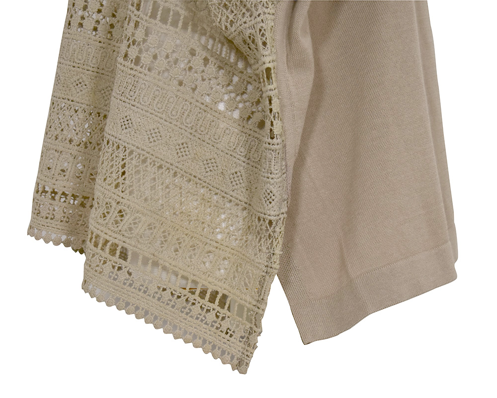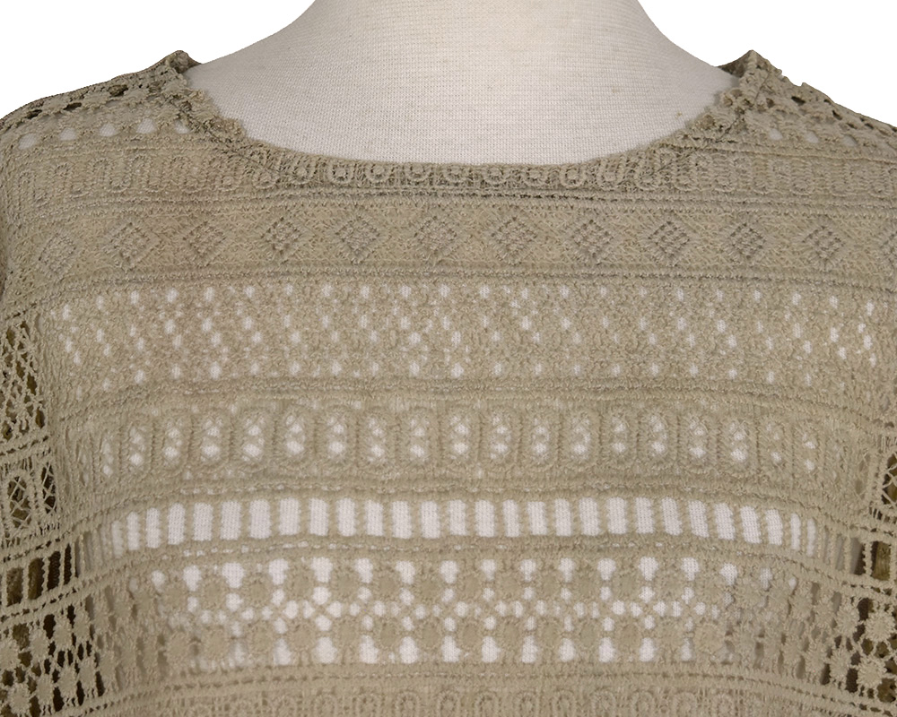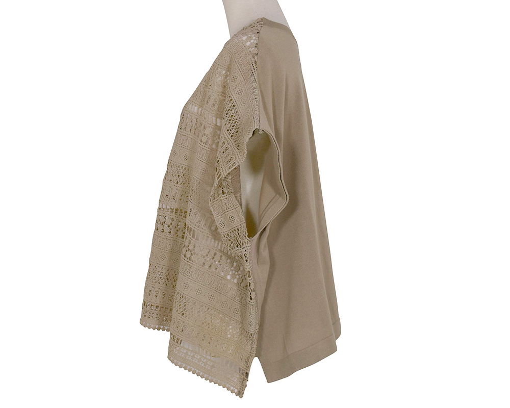 | 素材 | FABRIC:エンブロイダリーレース×ニット12G QUALITY:【レース】ポリエステル100%【ニット】綿100% ※ウォッシャブル |