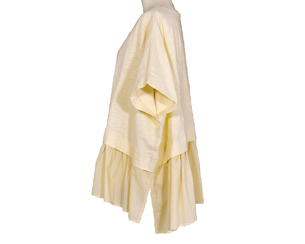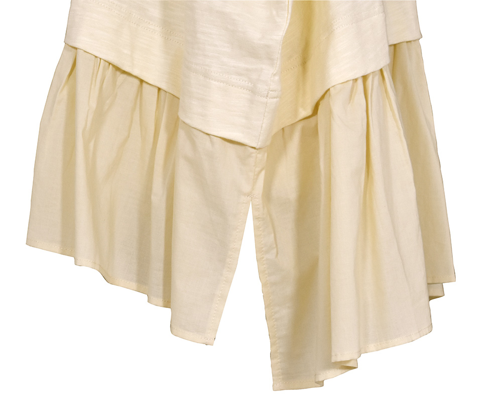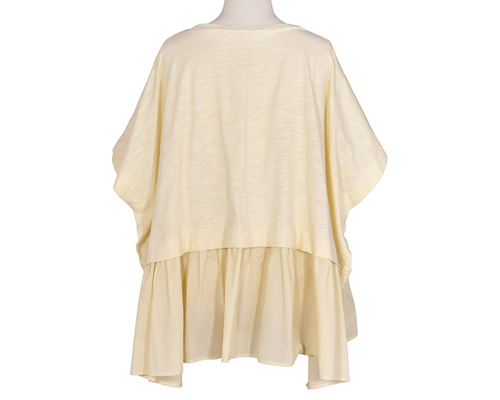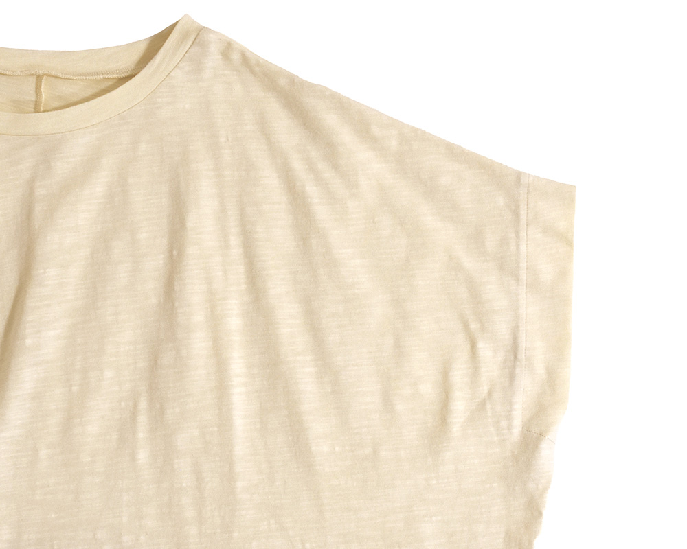 | 素材 | FABRIC:コットンスラブ天竺×コットンローン QUALITY:綿100% ※製品洗い ※ウォッシャブル |