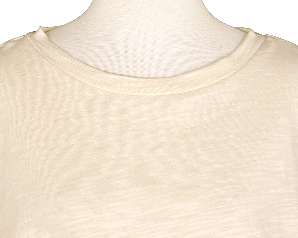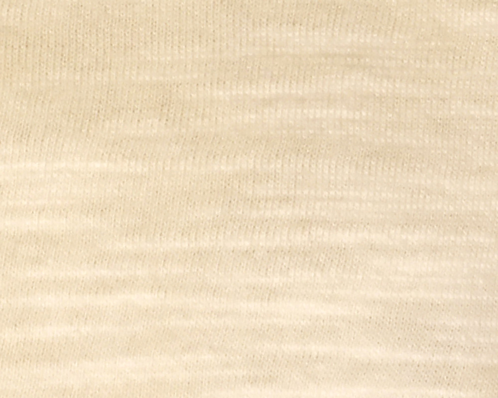 スラブ糸特有の濃淡や不規則な凹凸が、表情豊かな天竺素材です。軽やかで清涼感があり、ナチュラルな風合いが特徴です。