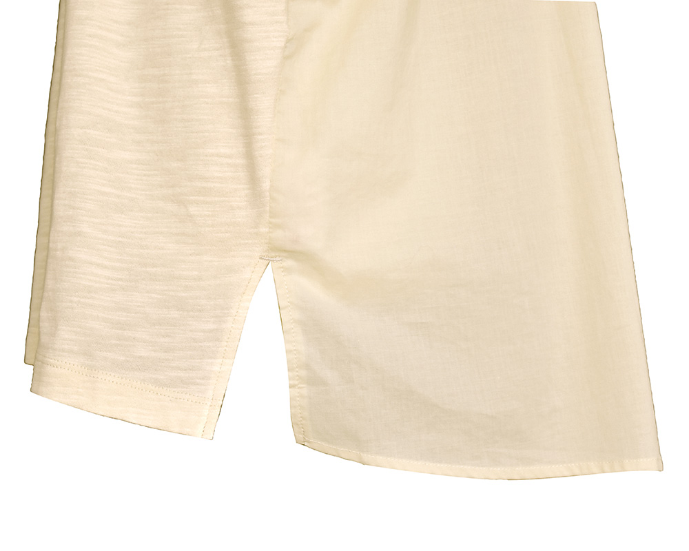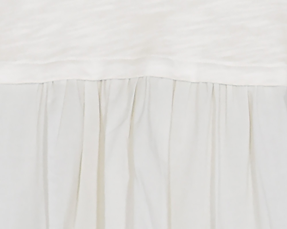 | 素材 | FABRIC:コットンスラブ天竺×コットンローン QUALITY:綿100% ※製品洗い ※ウォッシャブル |