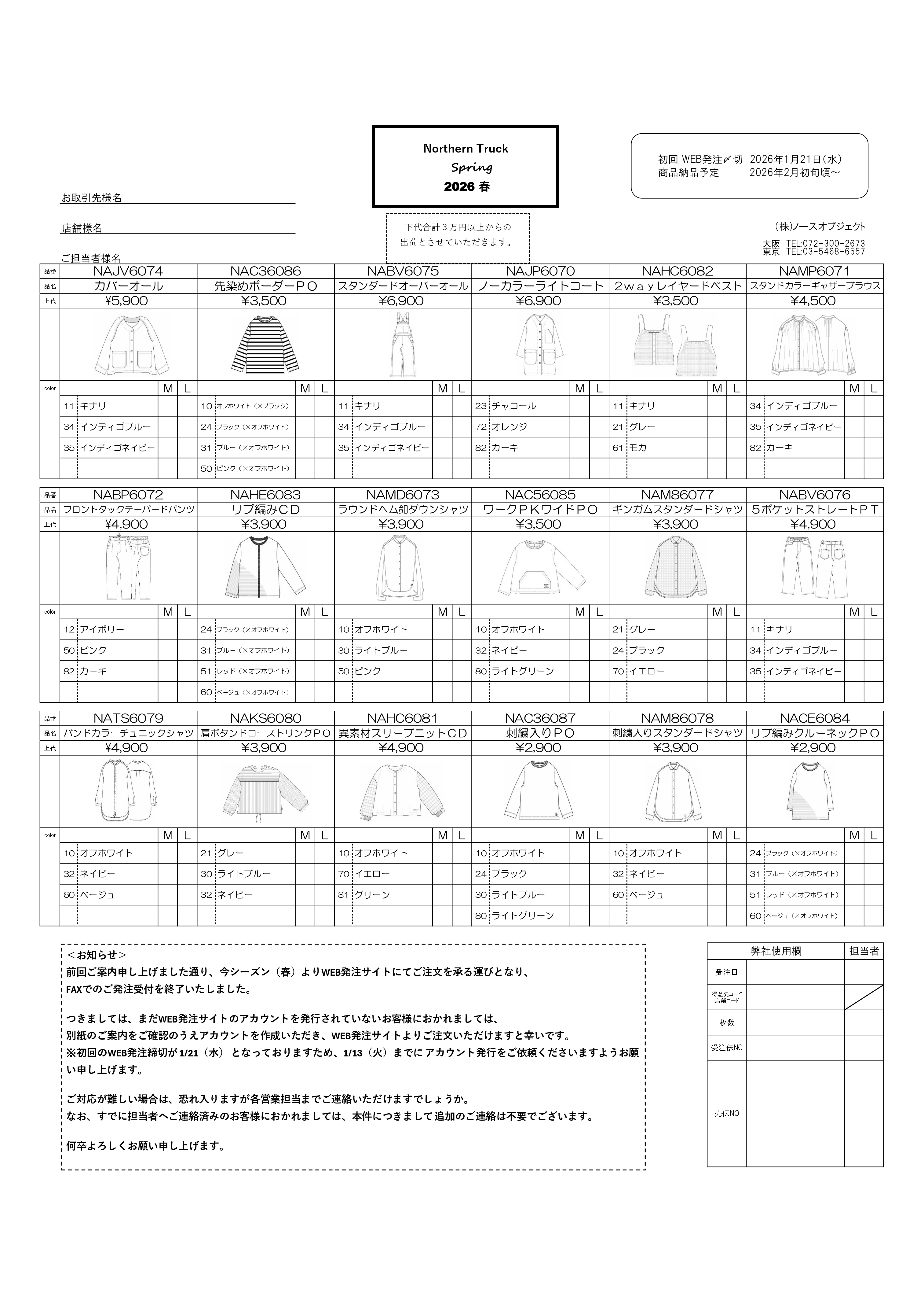 NORTHERN TRUCK 春 初回発注【ご発注〆切 1月21日(水)18時まで】