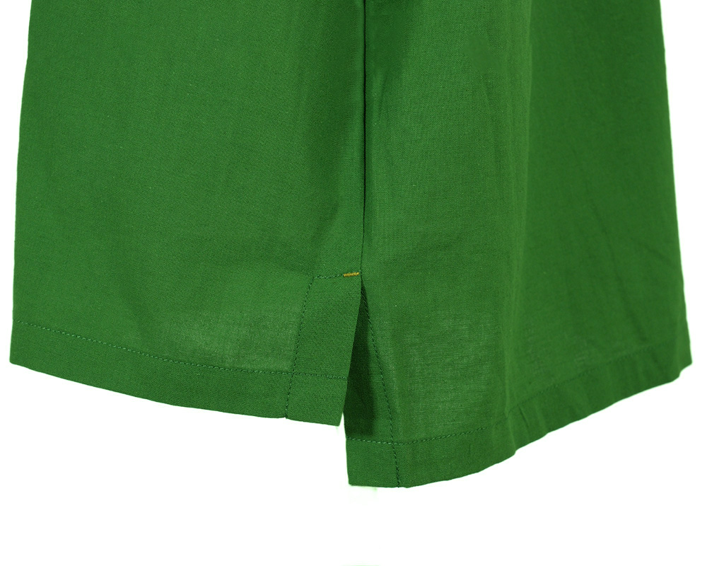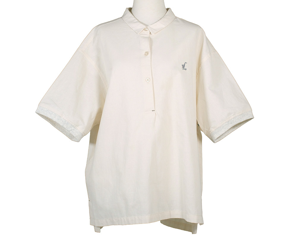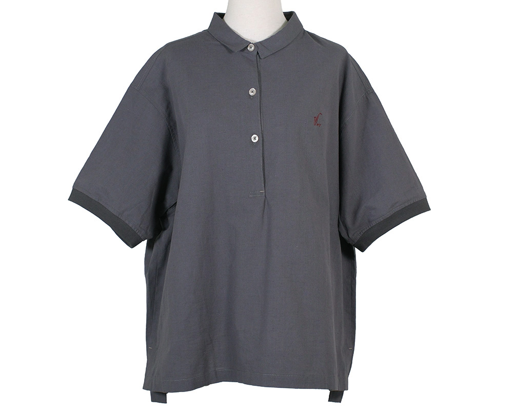布帛生地ならではの上品なハリ感を活かしたポロシャツ。カットソーとはひと味違うきれいめな表情で、オン・オフ問わず活躍します。袖口にはリブを採用し、程よくフィットしながらも動きやすい仕上がりに。前立て下にはタックを入れることで、シンプルな中にさりげない立体感とアクセントをプラスしています。裾のスリットが抜け感を生み、ボトムとのバランスも取りやすいデザイン。カジュアルにもお出かけにもお使いいただける、一枚で着映えする万能アイテムです。