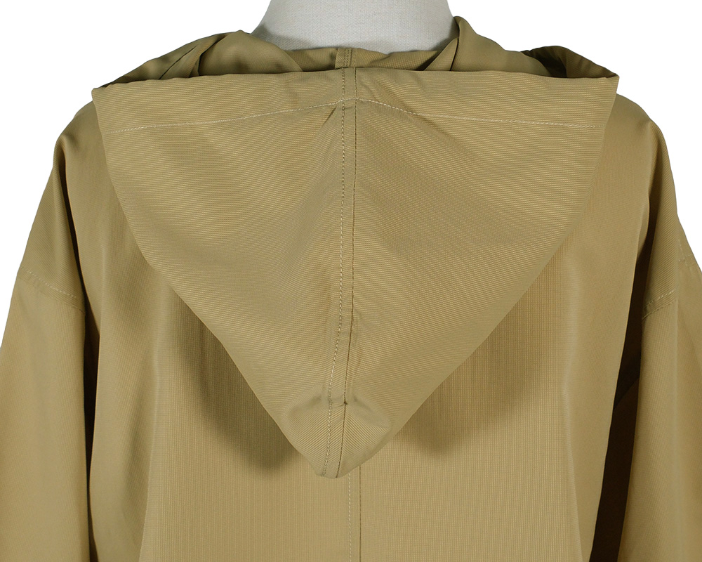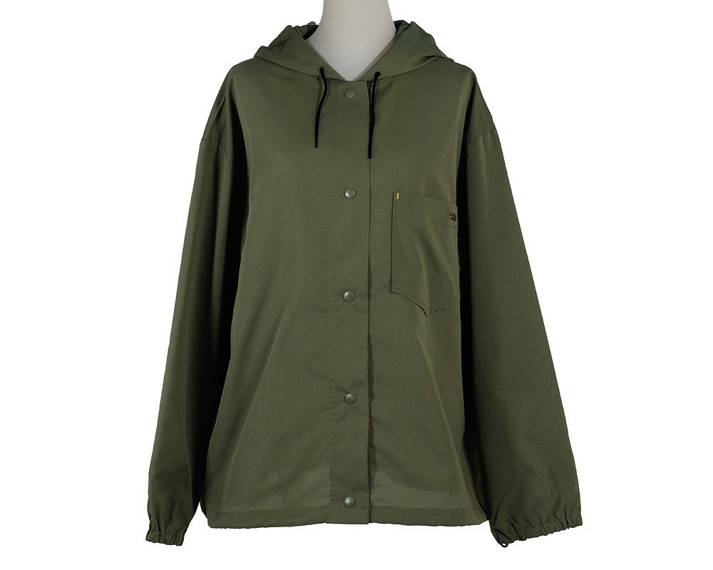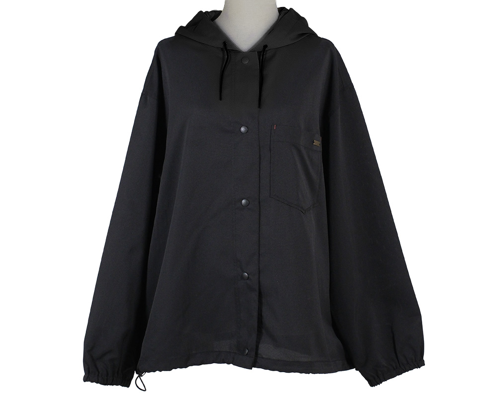 ソロテックス素材ならではの軽快さとしなやかさを活かしたフードジャケット。柔らかく優れたストレッチ性と、型崩れしにくい形態安定性を備えており、動きの多い日でも快適に過ごせます。フロントはスナップボタン仕様で着脱しやすく、フードのドローストリングが程よいカジュアル感をプラス。胸ポケットにはプレート付けさりげないアクセントに。袖口・裾のゴム仕様が実用性とスポーティな雰囲気を両立します。軽量で扱いやすく、季節の変わり目にも活躍する万能アウターです。