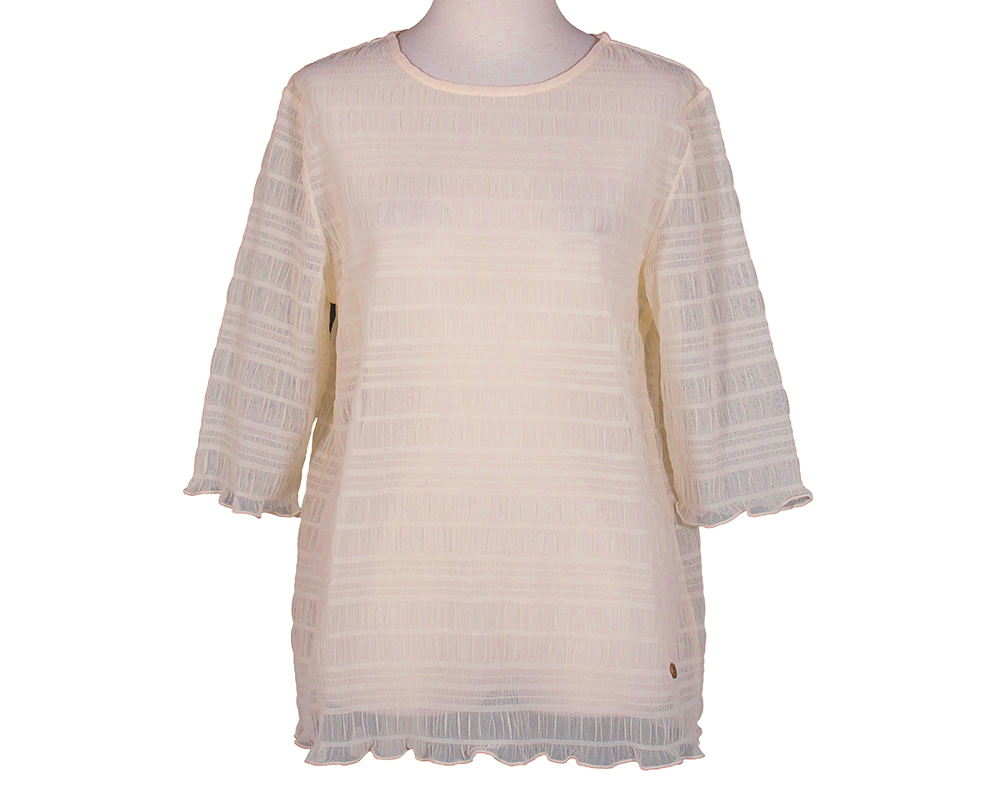着るだけでふわっと華やぐシャーリングプルオーバーです。薄くてやわらかな素材で、重ねても1枚でもさらっと快適に着ていただけます。細かなシャーリングがボーダー状に入り、動きのある表情を生み出しています。ネックレスと幸運を願うメッセージ入りプレート付きでギフトにもおすすめです。