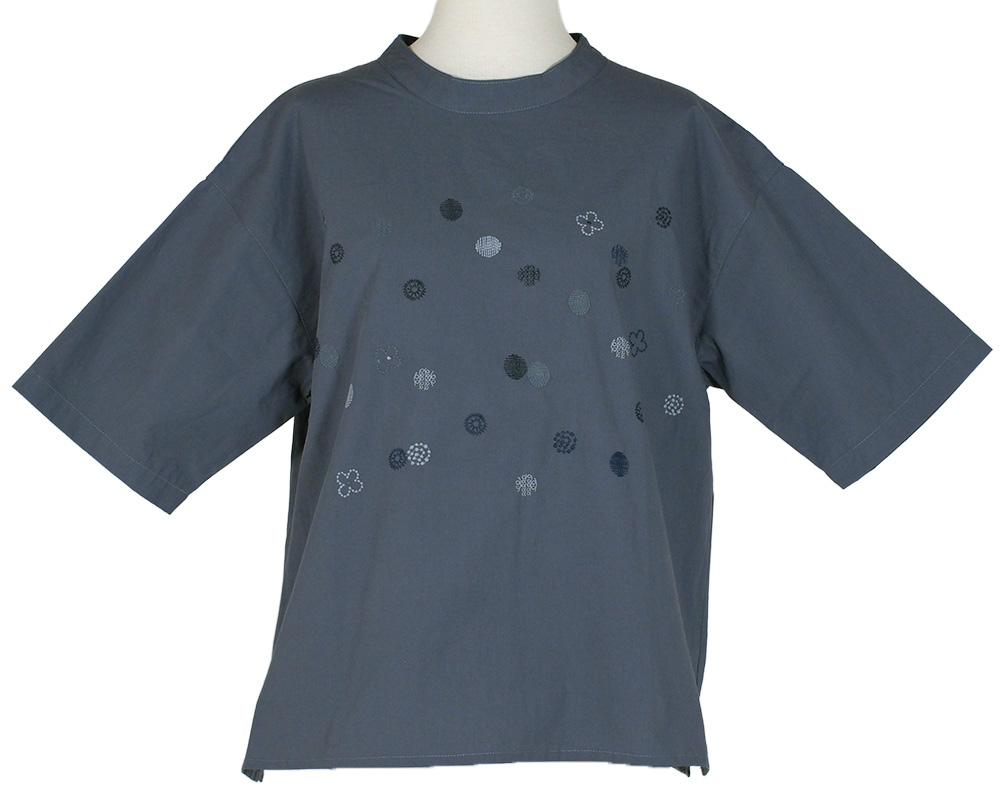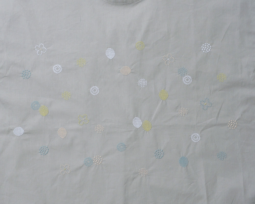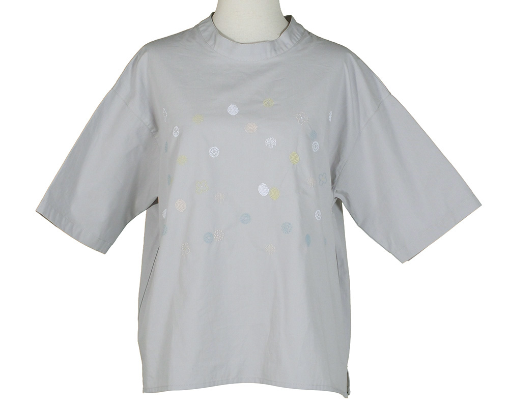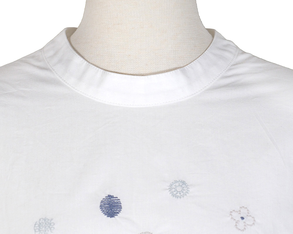 つながりモチーフの刺繍をあしらったプルオーバーです。プチハイネックの襟デザインはカジュアルになりすぎず1枚でも様になるのがうれしいポイント。コットン素材で、さらっと心地よく着ていただけます。5つの様々な「わ」をイメージしたドット刺繍がポイント。バッグとおそろいのお花柄も入れて、つながりのあるデザインになっています。